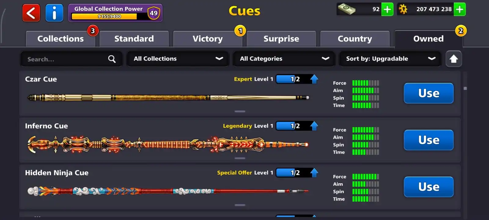 Cheapest🔥level 57🔥cues legendary 3🔥coins 207M🔥full access account🔥