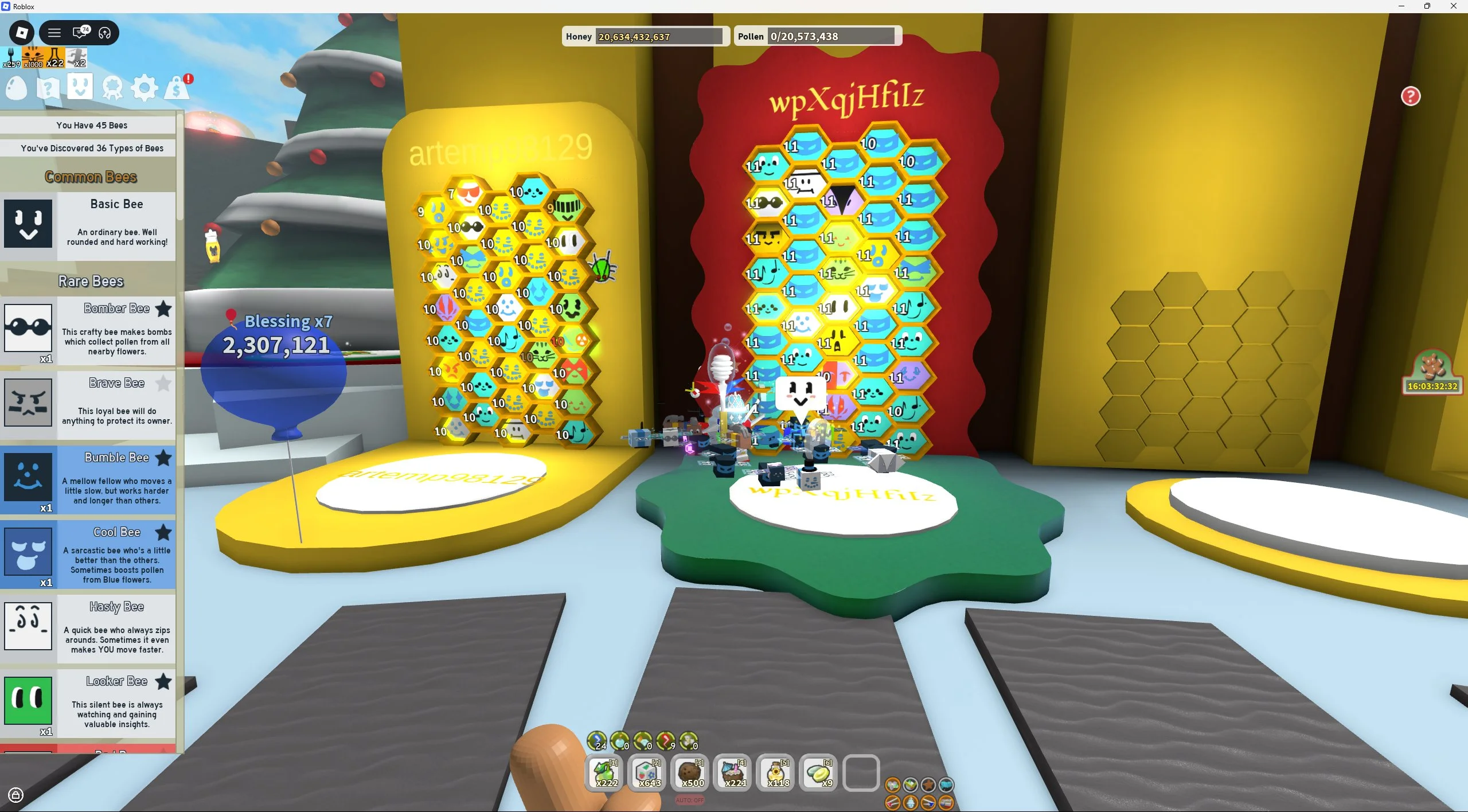 ROBLOX898///ACCOUNT WITH 45 BEES 11 LVL BLUE HIVE 6400+ TICKETS BUOYANT BEES