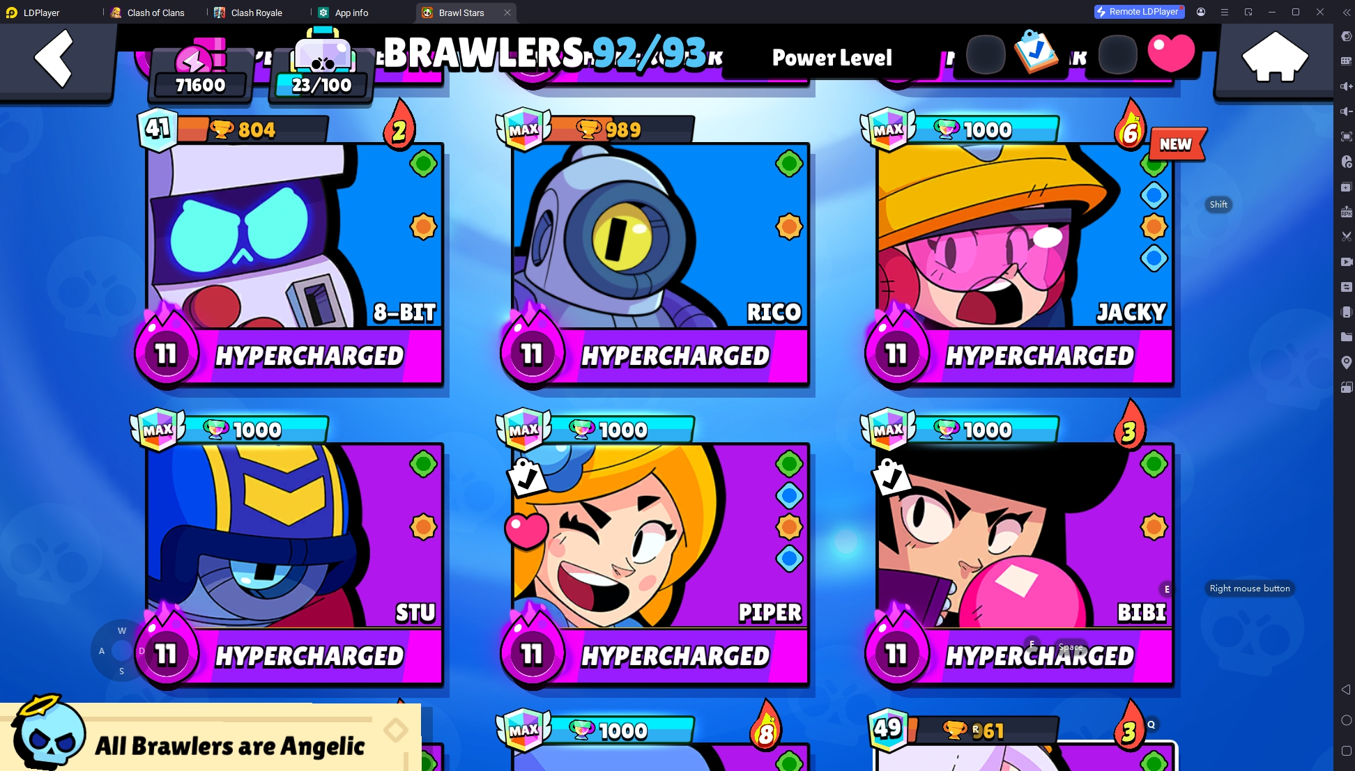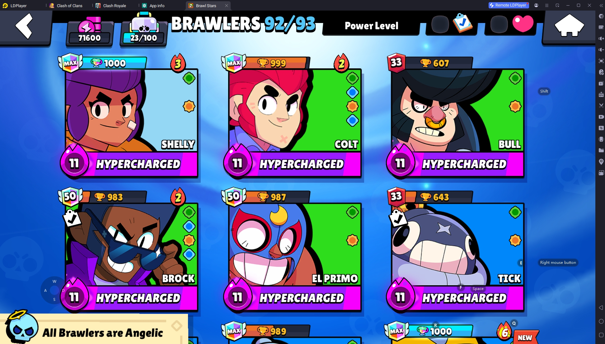 195 SKINS 💯 TRIXIE COLETTE 🧡 71.600 TROPHIES 🏆 92 BRAWLERS 🐼 26 HYPERCHARGED 🩸 32 MAX BRAWLERS 💛 RUDE LOU 🧡 EL REY PRIMO 🧡 FENRIR BUZZ 🧡 IMPIE COLETTE 🧡 KITBOXER 💯