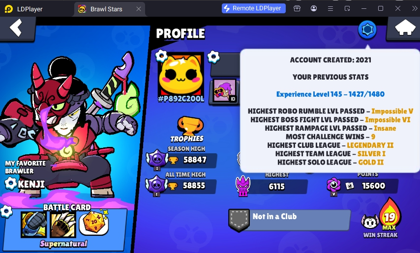 263 SKINS 💯 FURIOUS FANG ❤️ 58.847 CUPS 🏆 94 BRAWLERS 🐼 16 HYPERCHARGED 🩸 23 MAX BRAWLERS 💛 ONI KENJI ❤️ KNIGHT LILY ❤️ HORUS BO ❤️ MAJOR ROSA ❤️ POSTAL BROCK 💯