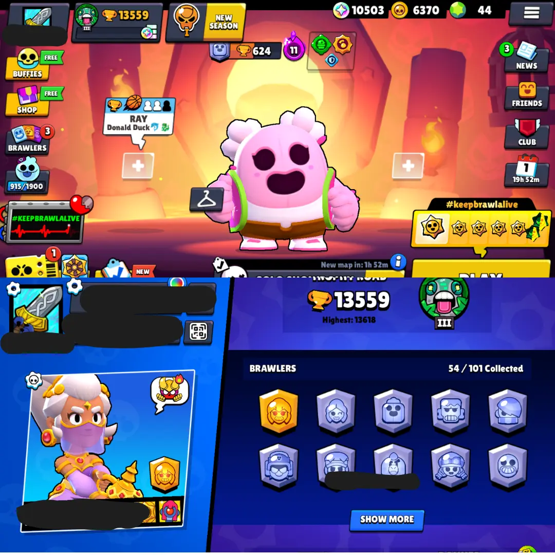 54 BRAWLERS ⭐️ 52 Skins ⚡ 3 Hypercharge Skins 🏆 13,559 Trophies