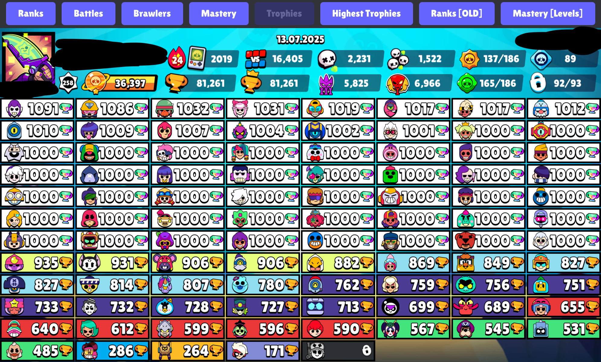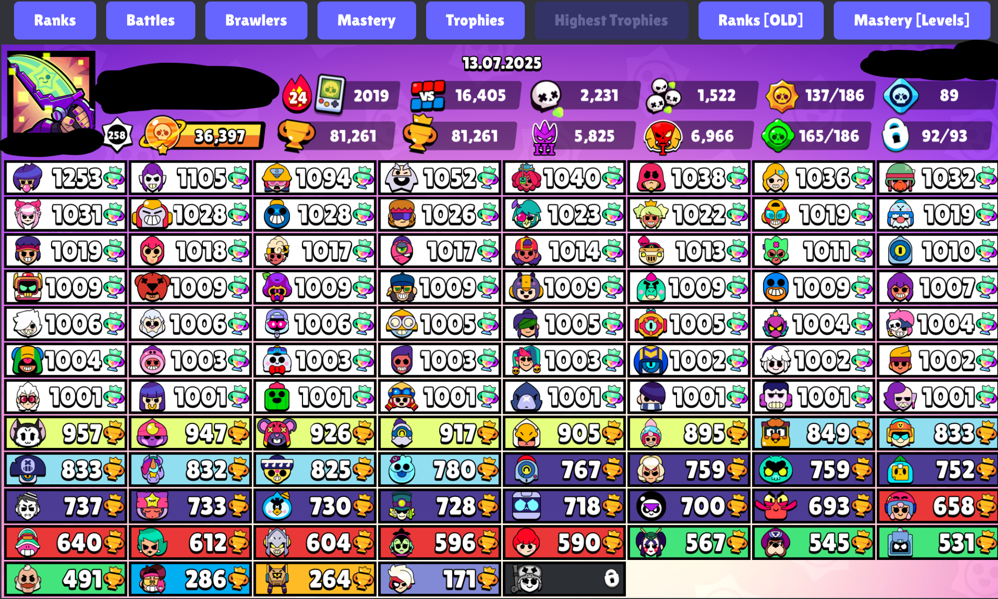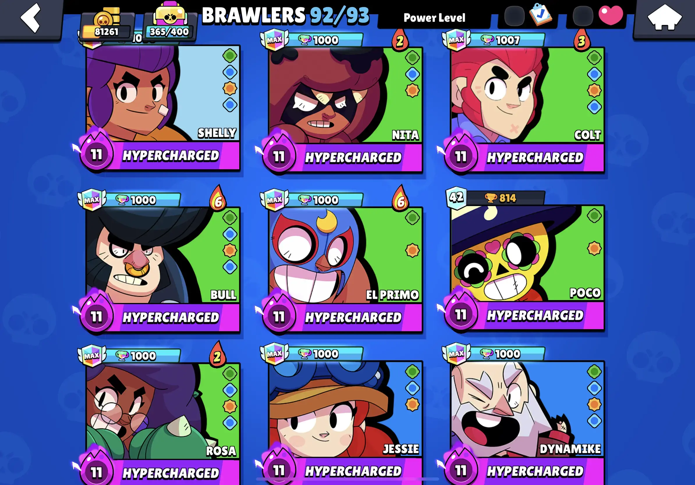 🌙 81k Trophy 🌙 54 Maxed out 🌙 Heroine Bibi 🌙 16k+ 3v3 Wins 🌙 257 Skins 🌙 48 Hypercharge 🌙 92 Brawlers 🌙