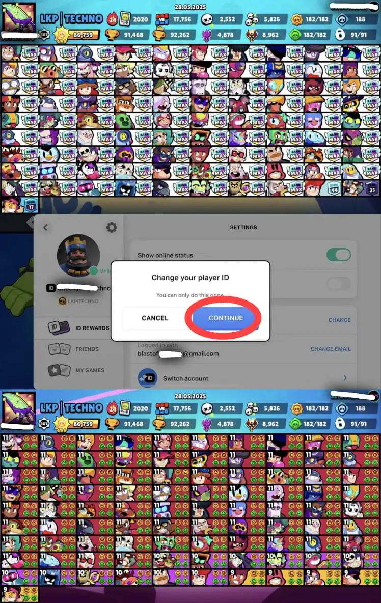 🔥 91,400 TROPHY 🔥 | 🃏 91/91 BRAWLERS 🃏 | 74 MAXED BRAWLERS 😈 | 368 SKINS 👒 | XP 212 | 🔑 FULL MAIL ACCESS 🔒 | 92K 🏆 | HYPERCHARGED 60 ✨ | LEON,SPIKE,SHELLY,SURGE,AMBER,CROW