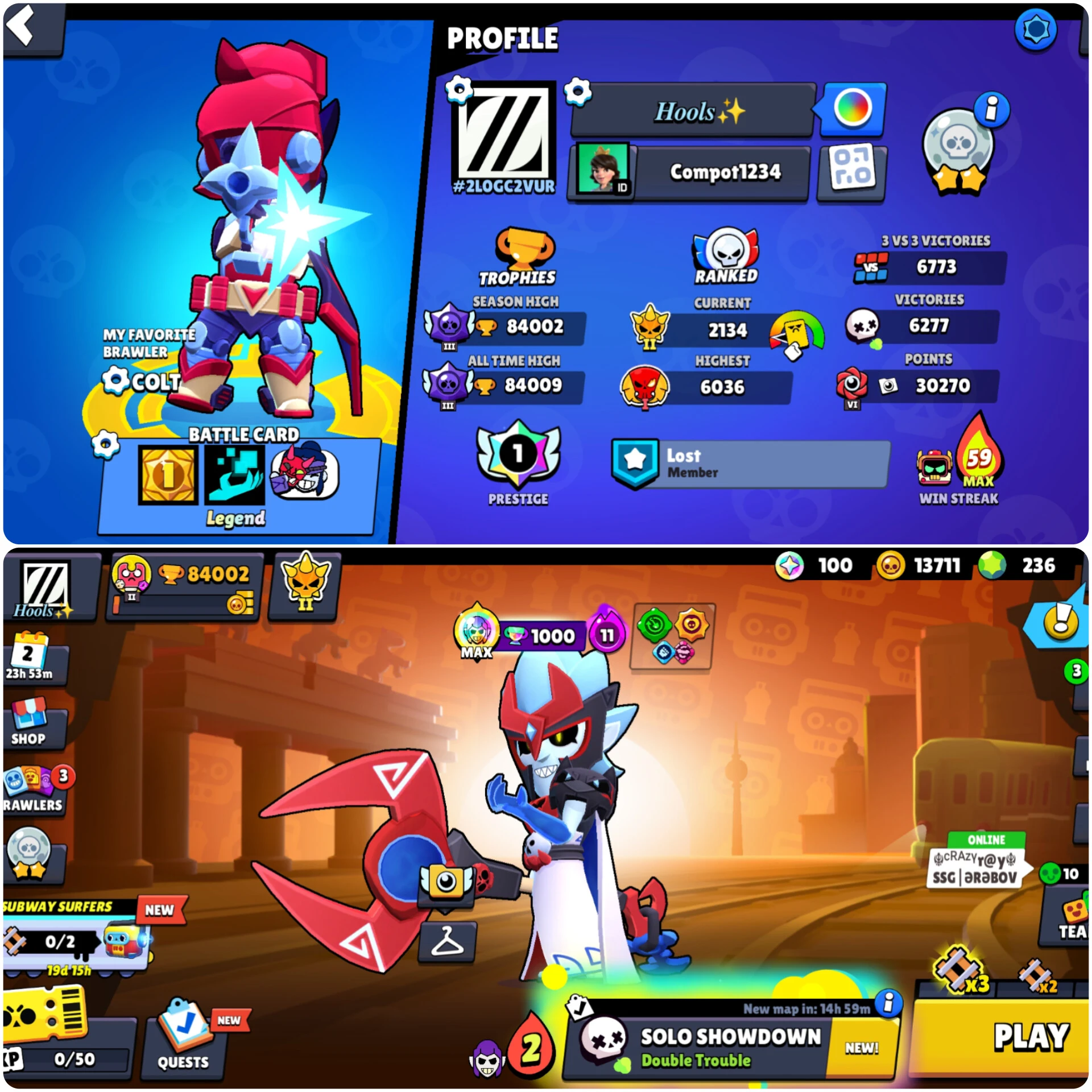 94 Brawler 💀| 84k Trophy🏆|Max Brawler 27 | Haypercharged 21| Skin 202🗿| 1000+ Trophy Brawler 60 | 84000 | instant Delivery | Android & IOS
