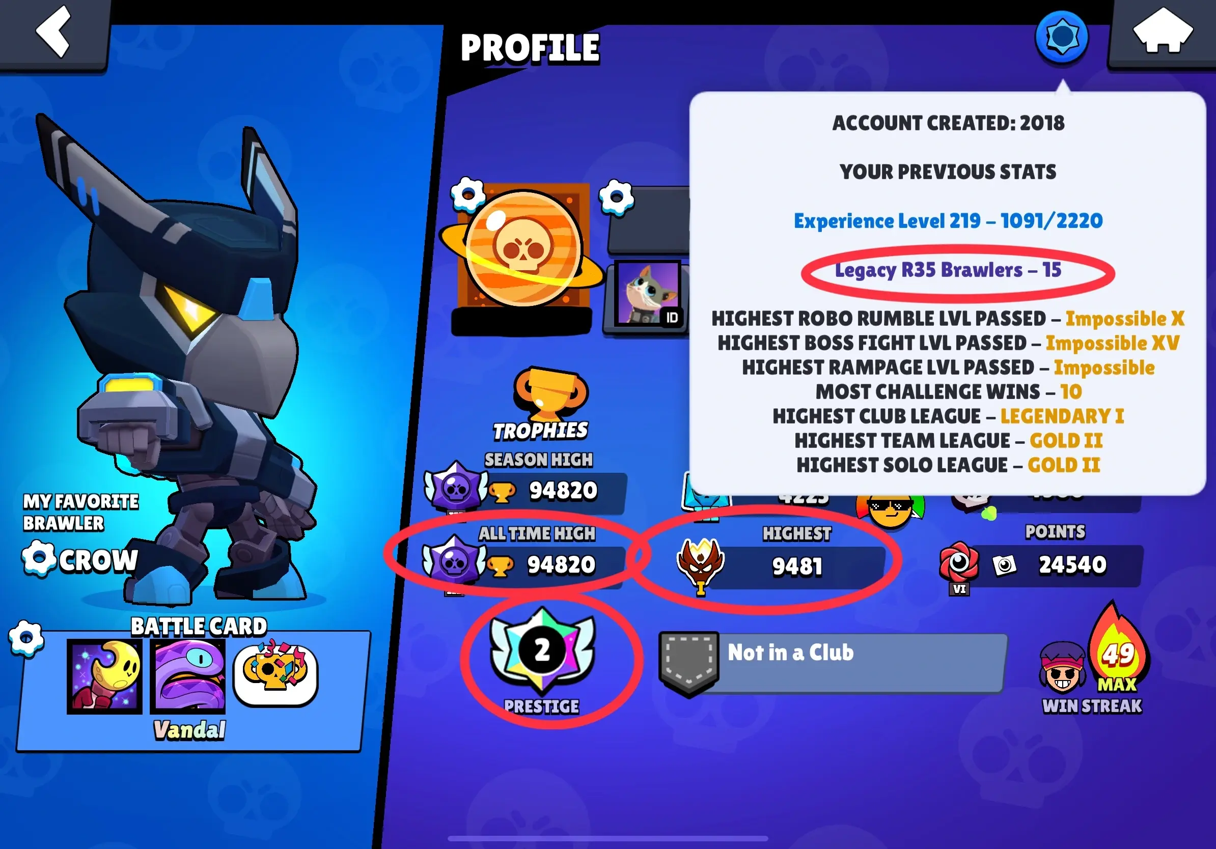 ❄️ 94k Trophies ❄️ 2x old Masters ❄️ 15x Legacy r35 ❄️ 56 Maxed ❄️ 16k+ 3v3 Wins ❄️ 275 Skins ❄️ Saturnian Fame 3 ❄️