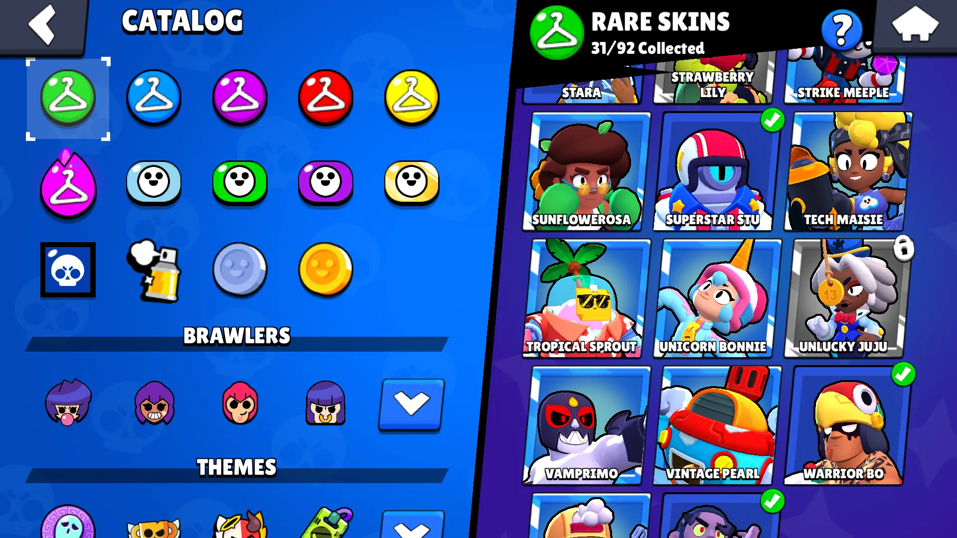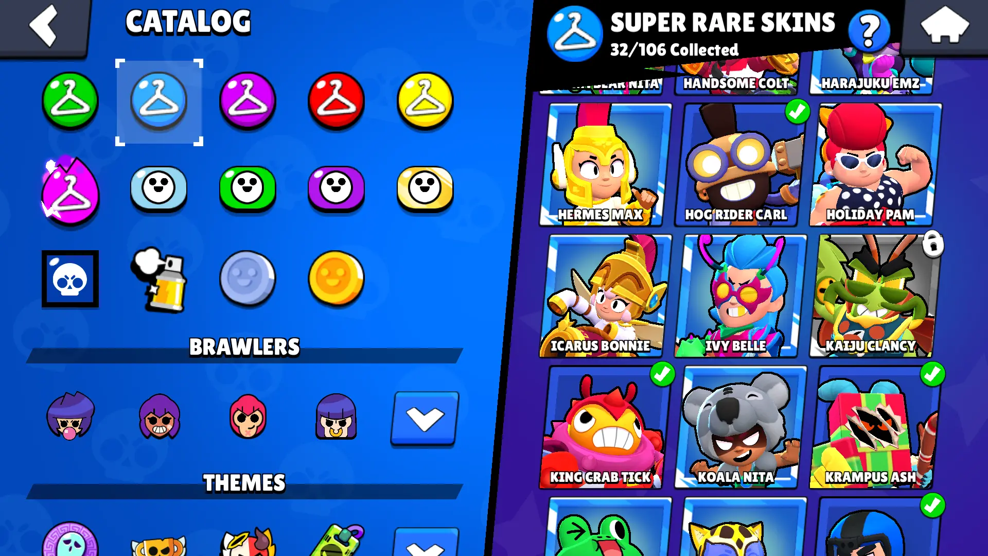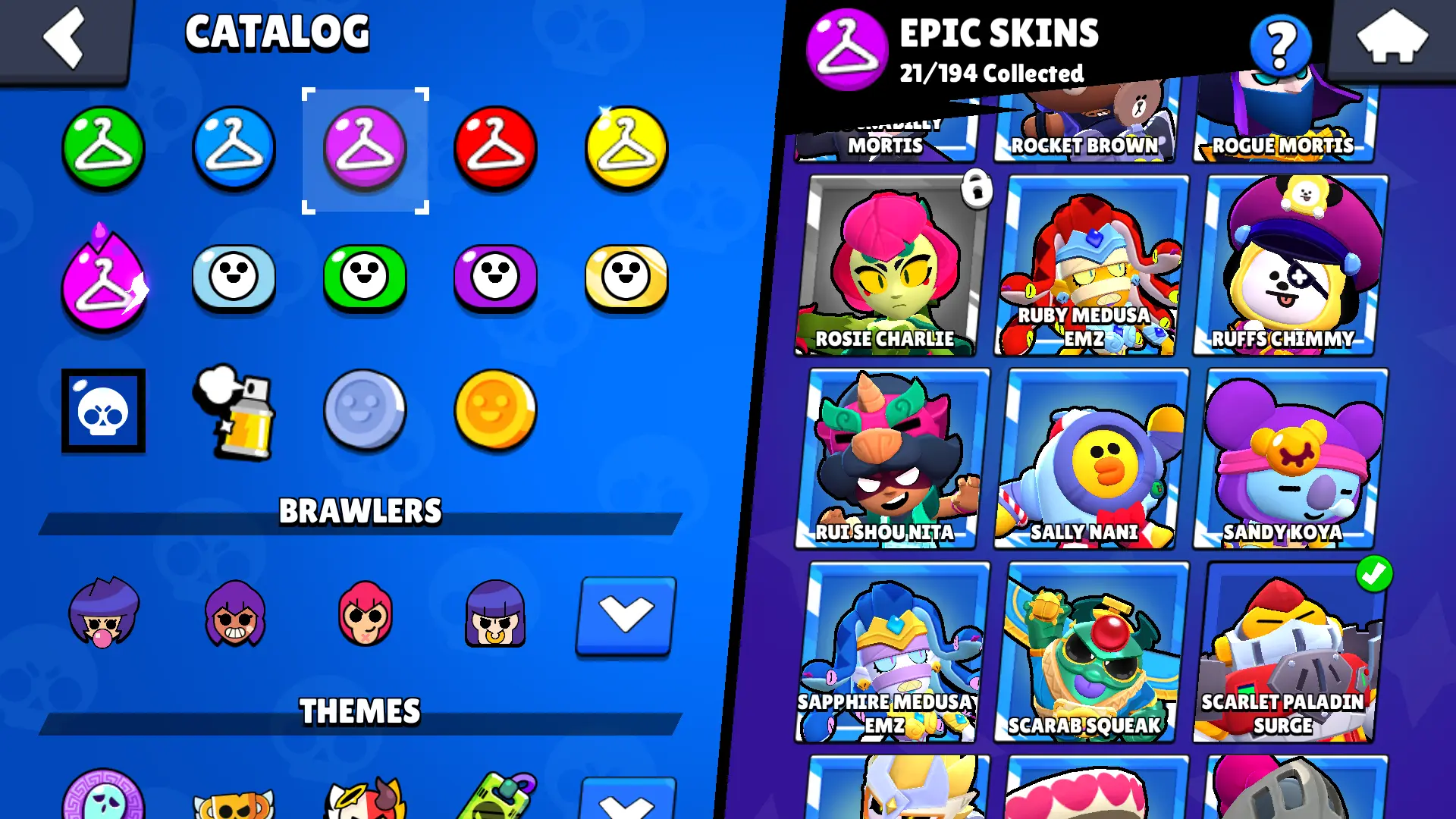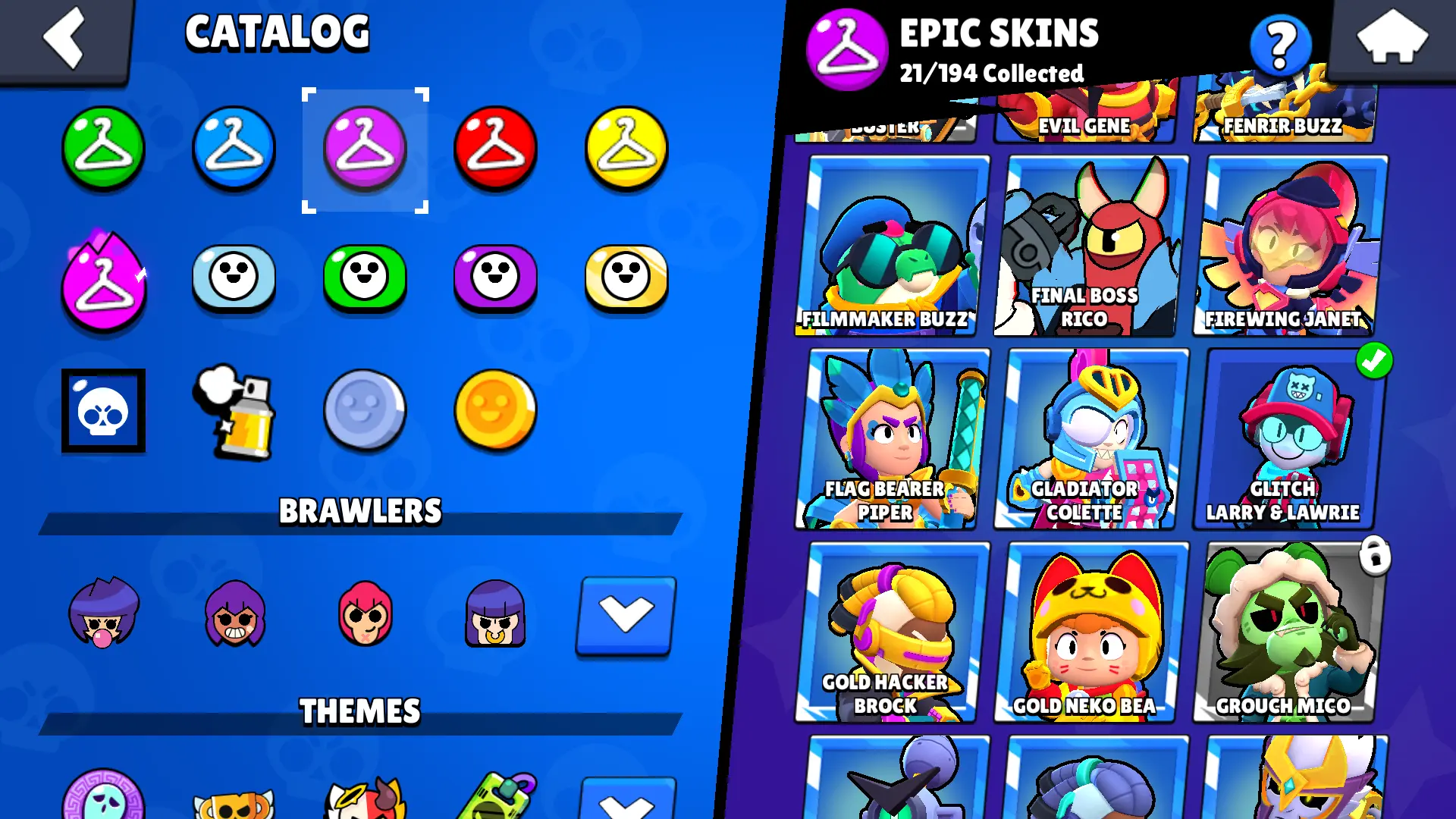 95 SKINS | 26308 TROPHIES | KITSUNE LOLA | GODZILLA BUZZ | SURGE LIGHTYEAR | REINBEAR NITA | WARRIOR BO | PIANO 8-BIT | WOODRIVER STU | CAESAR SAM | GALAXY STORM LOLA | DARK CLOWN SAM | ANGEL GENE | GLITCH LARRY & LAWRIE | URBAN NINJA TARA | 69 BRAWLERS