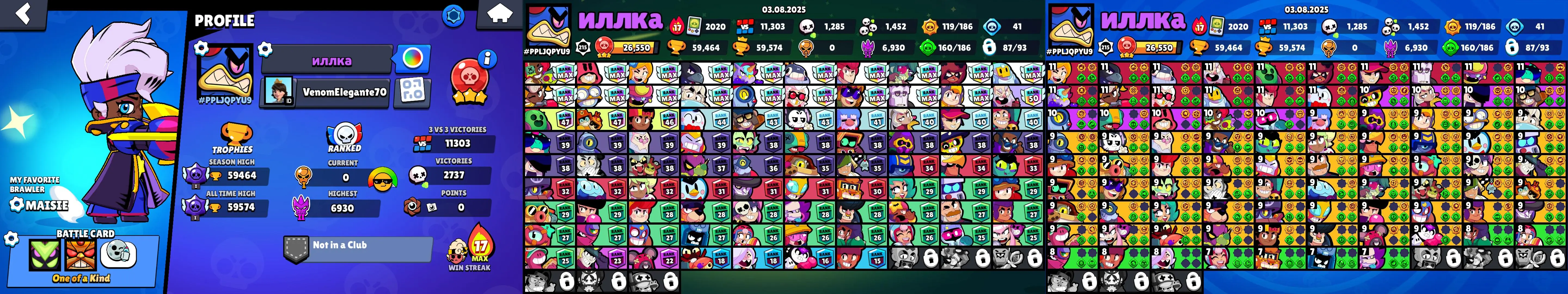 #BR1128 59464 Trophy | 87 Brawler + 16 (MAX) + 16 (HYPERCHARGED) | 176 Skins + 2 GYPER + 1 Legend + 5 Mythic + 46 Epic | IOS/AND