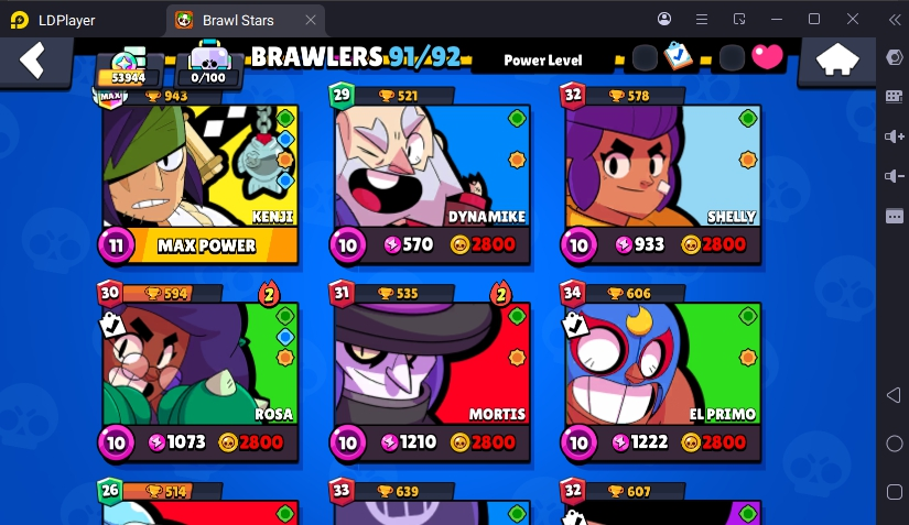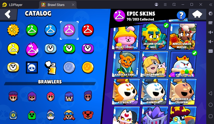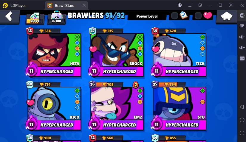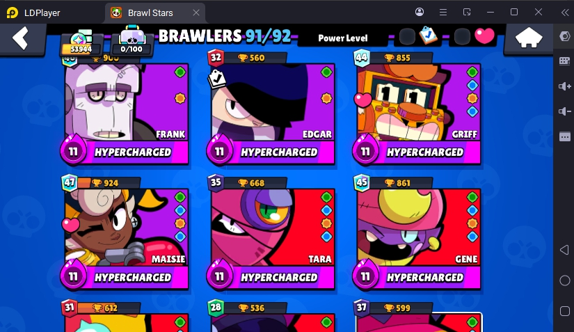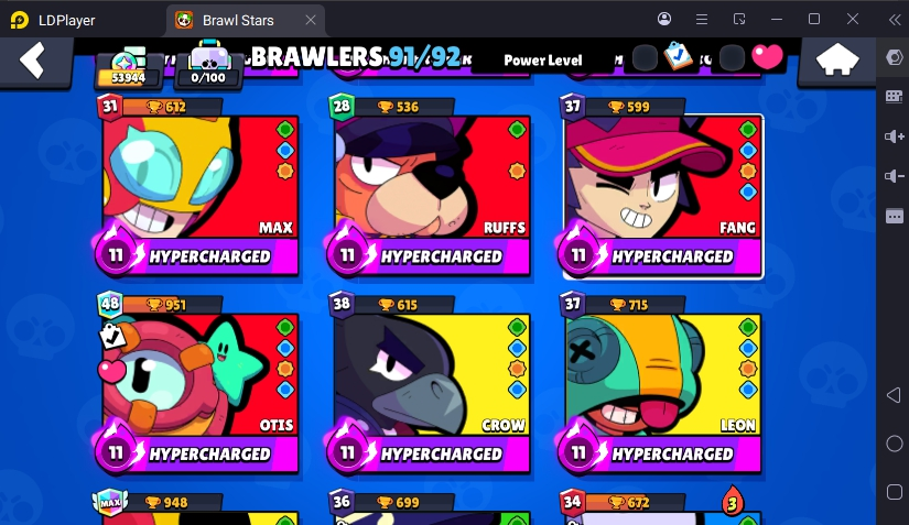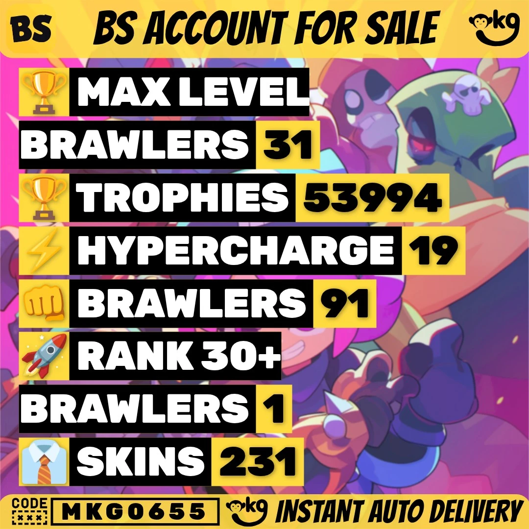 231 SKINS 💯 FURIOUS FANG 🧡 53.994 TROPHIES 🏆 91 BRAWLERS 🐼 19 HYPERCHARGED 🩸 31 MAX BRAWLERS 💛 KING LOU !MKG0655