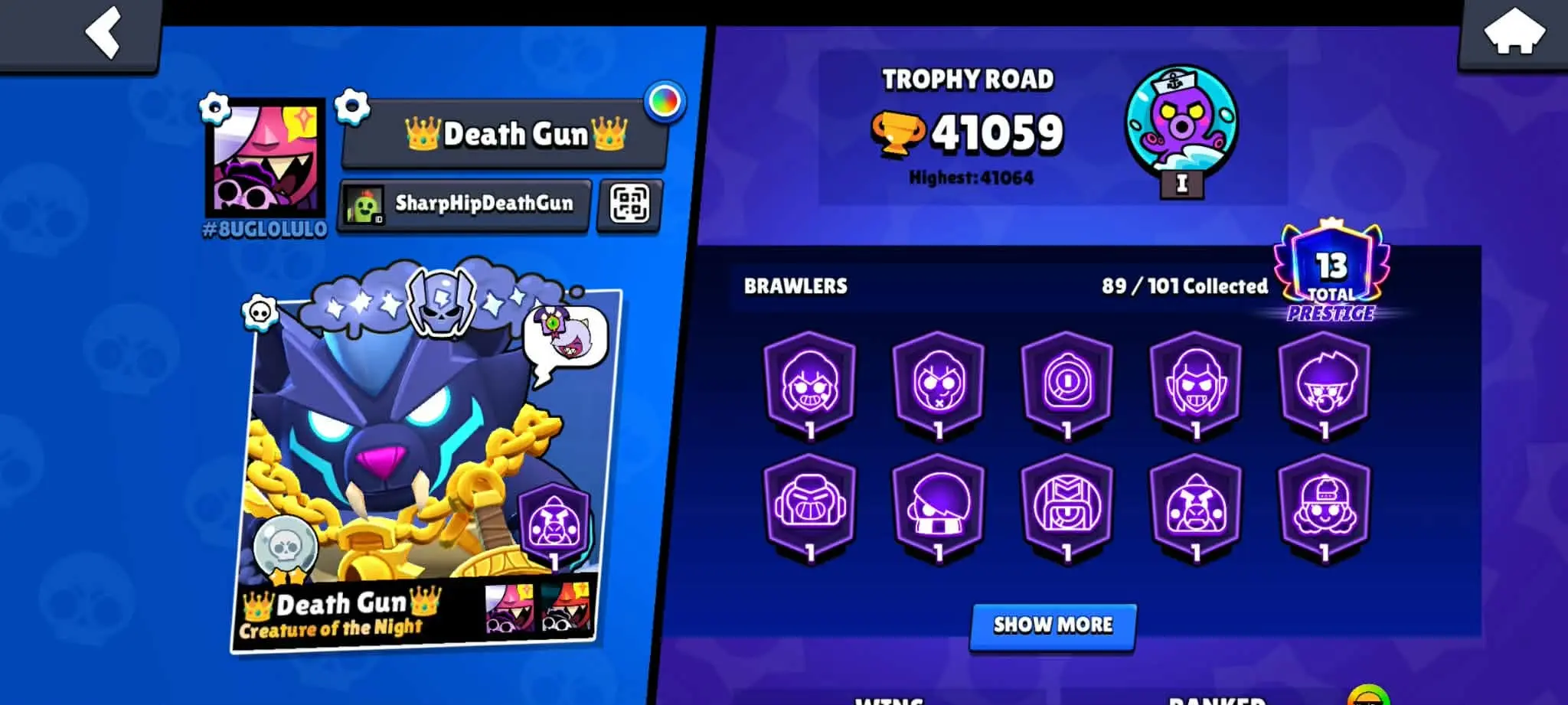 PRESTIGE-13 || 41K TROPHY || 24 BRAWLER LEVEL 11 MAX || 16 HYPER CHARGE || RARE 125 SKIN || 90 BRAWLER UNLOCK || MANY OLD COLLECTION