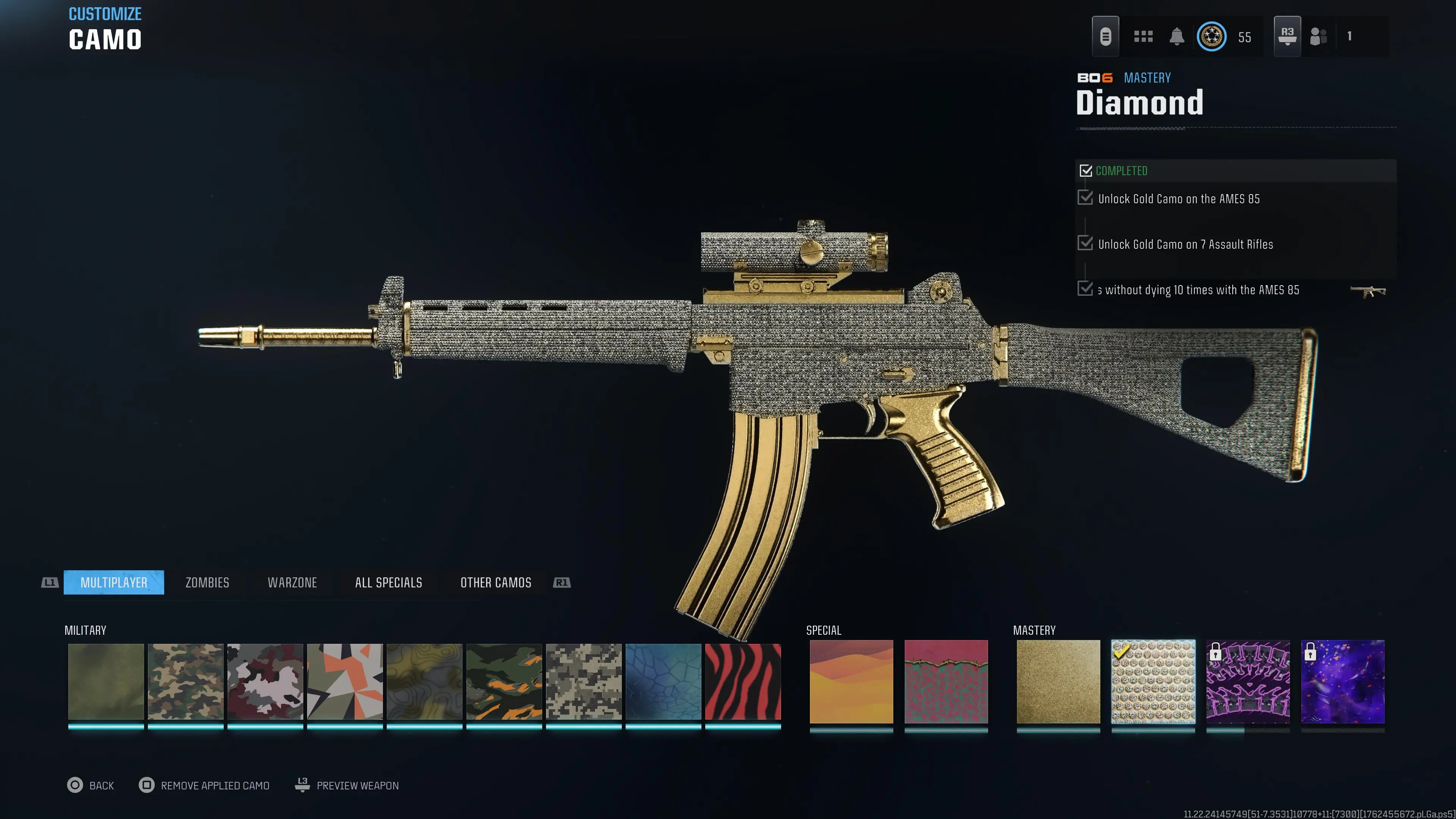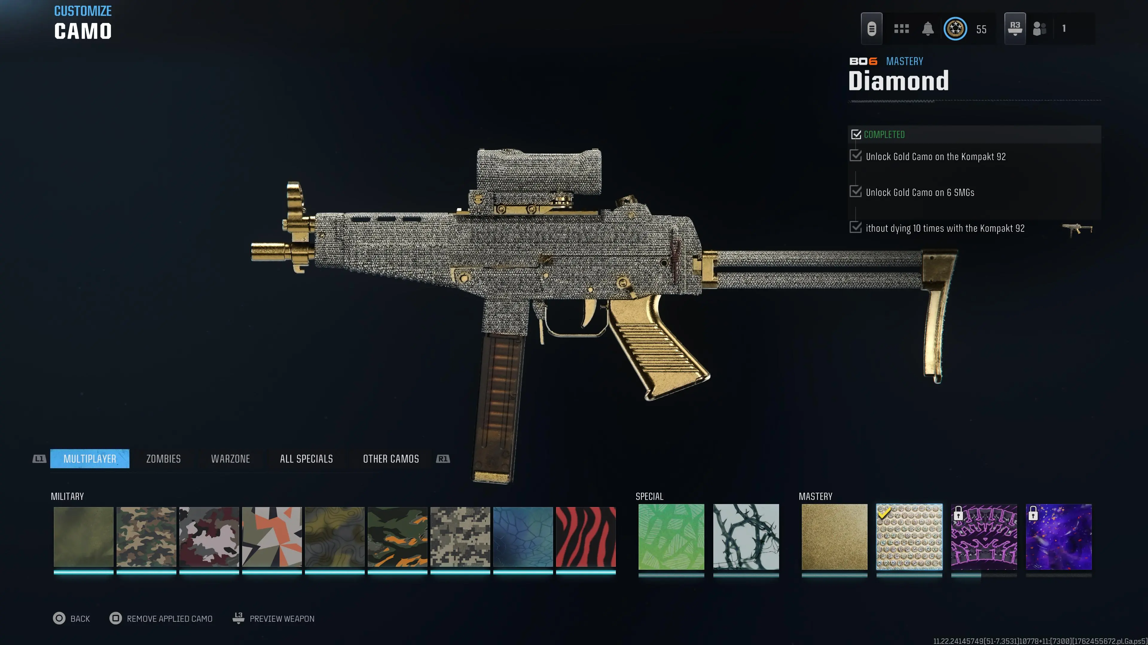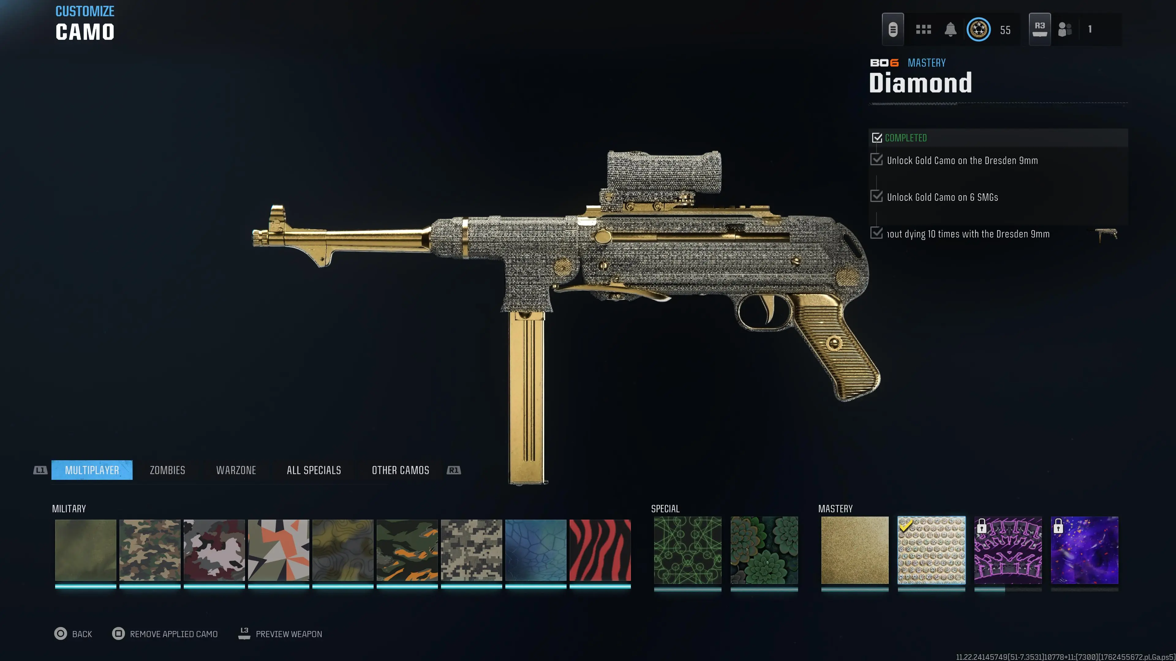 🕷[ 15 Diamond Camos (Kilo 141 ⸱ Dresden 9mm )] 💣[Warzone 4] |🎖️Level 55 ⸱ Prestige 1 |⚡ Instant Delivery✔ Linkable to all platforms | 🏆 Full Access| 🥇 Hand Leveled | WZ4