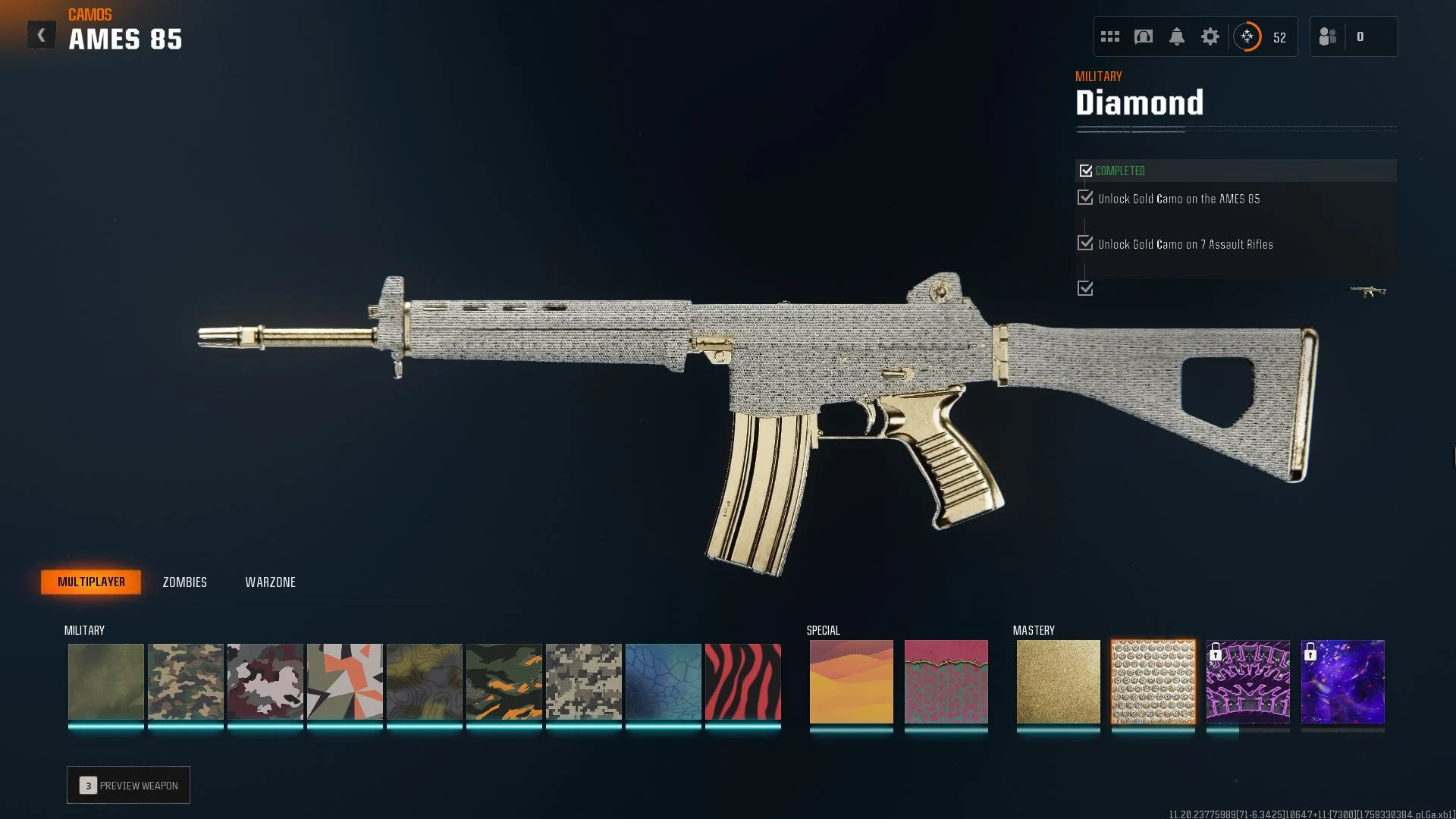 💎 BO6 💎 13 Diamonds 💎 50 Multiplayer Wins Completed 💎 Ranked Ready 💎 Level 50-55 💎 Diamond ARs and SMGs 💎 Full Access 💎Fast Delivery