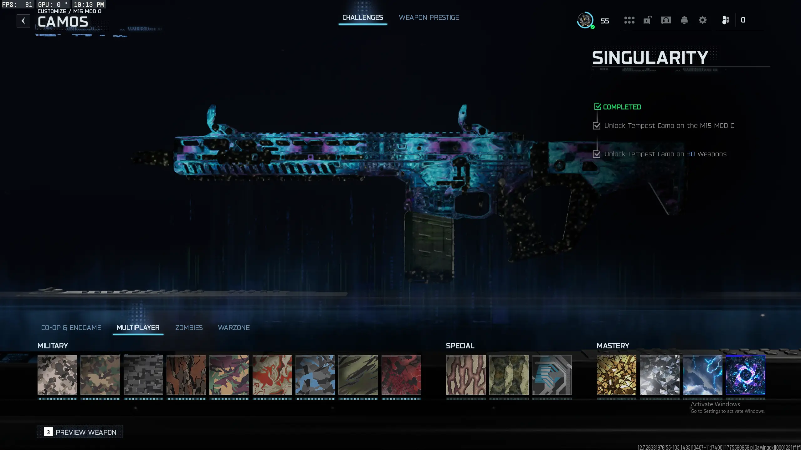🔥 BO7 🔥 Singularity ✦ Genesis ✦ Infestation ✅ ALL GUNS PRESTIGE 1 MAXED 🎯 1500 Camos ⚡ Event & Prestige Camos 👑 Prestige 7 🔓 Full Access 🌐 Steam • BNet • PSN • Xbox
