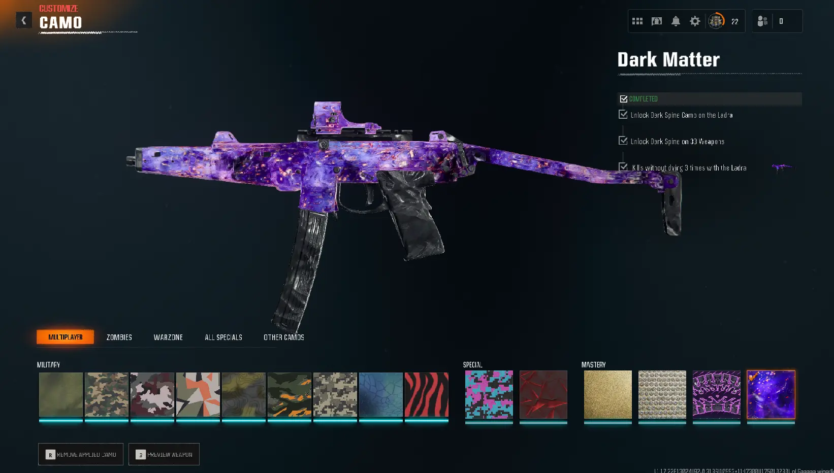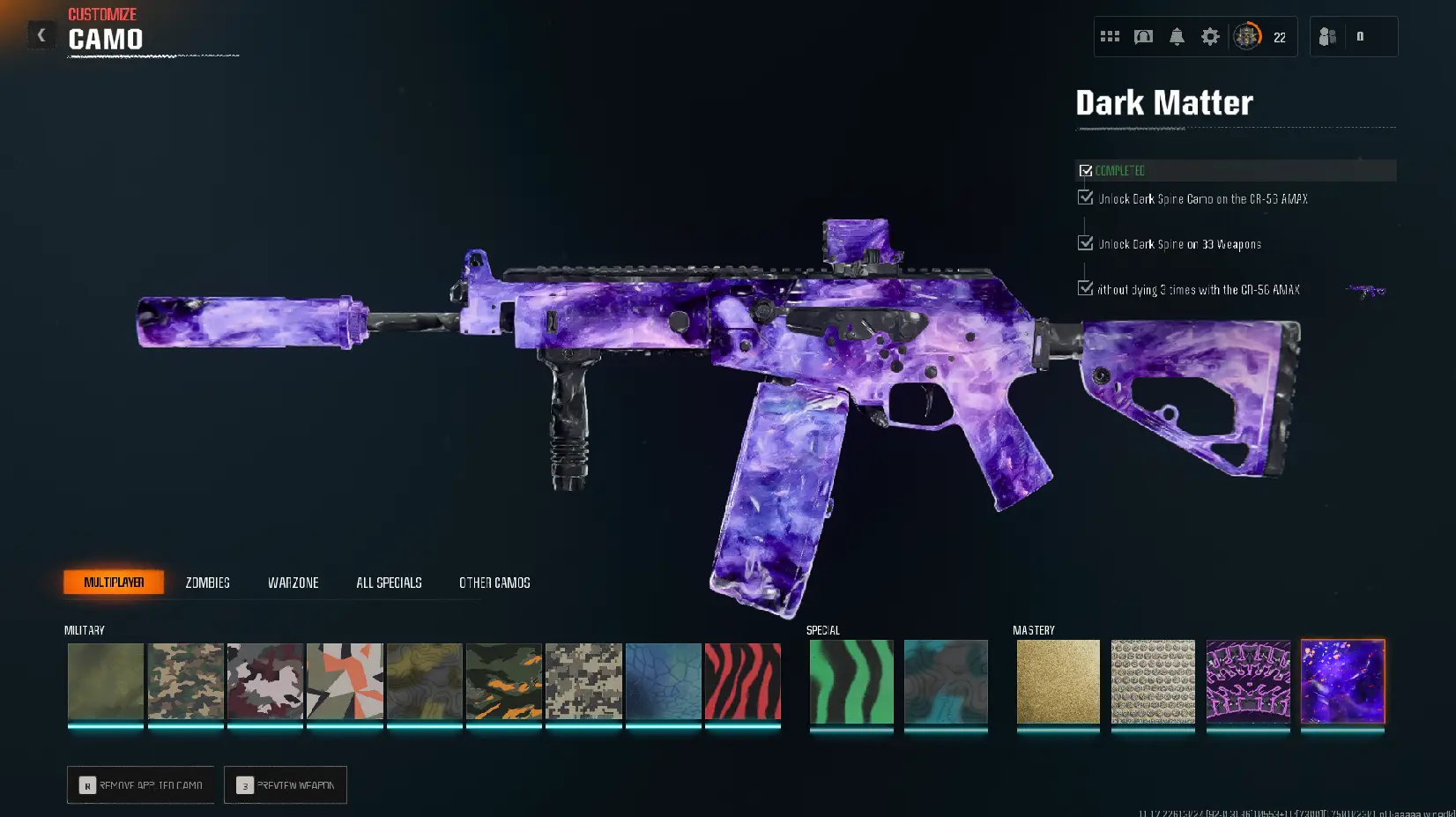 🔥 Prestige Master 💎 Dark Matter Camo ⸱ 🥇 Prestige 10 💯 Level 100 💥 600 Camos Unlocked 🎮 Steam | Xbox | PSN