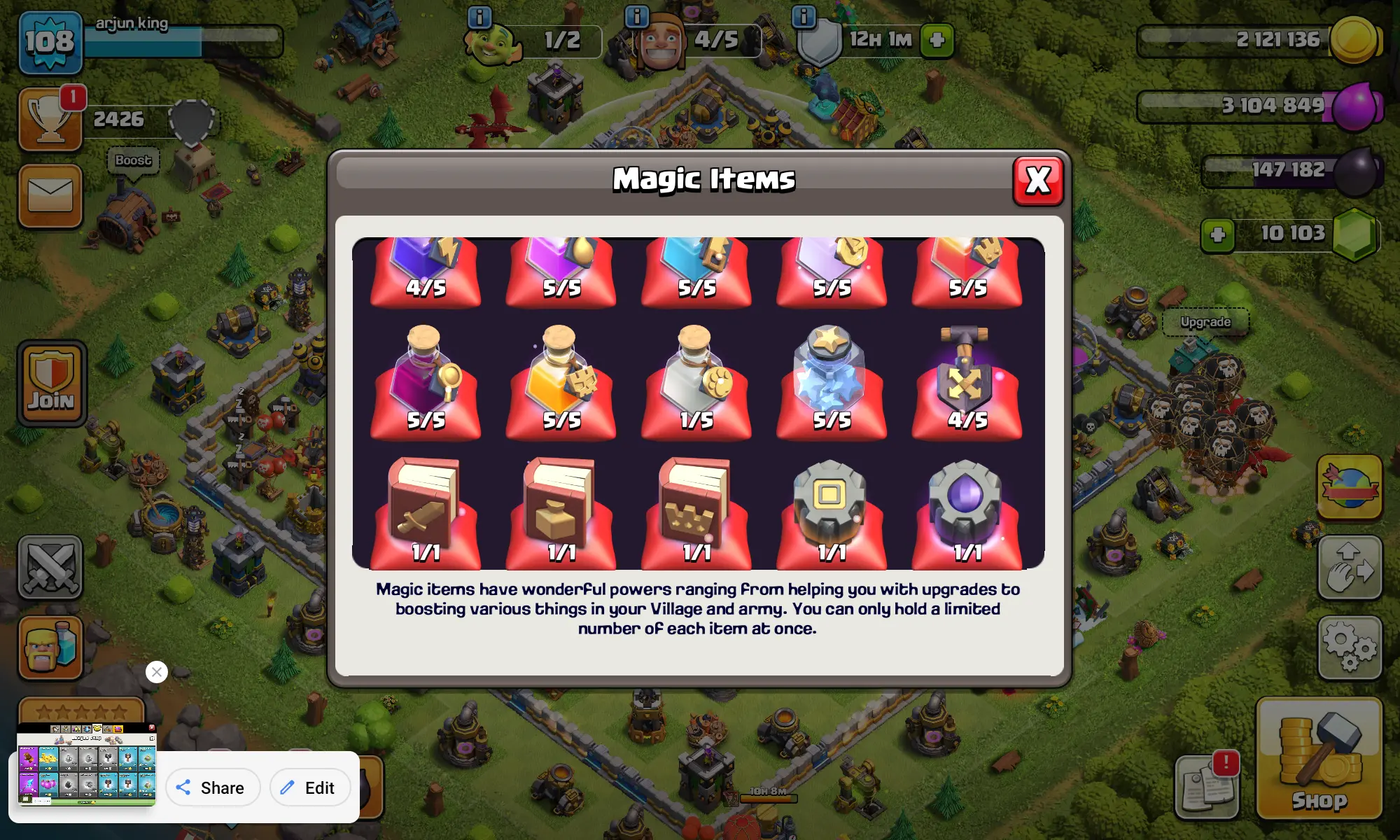 💎10K+ GEMS LOADED 💰 | 1000% STACKED TH12🔥 | 🎮 Lvl 103 | HEROES 51-50-30-20⚔️ | 🏆 900 CWL + 1800 Raid Medals✨ | 🏰 BH7 | ⭐ 404 War Stars | 🎟️ Magic Items + Epic Equipment ✔️ | 🔄 Name Change Available | 🚀 INSTANT DELIVERY |