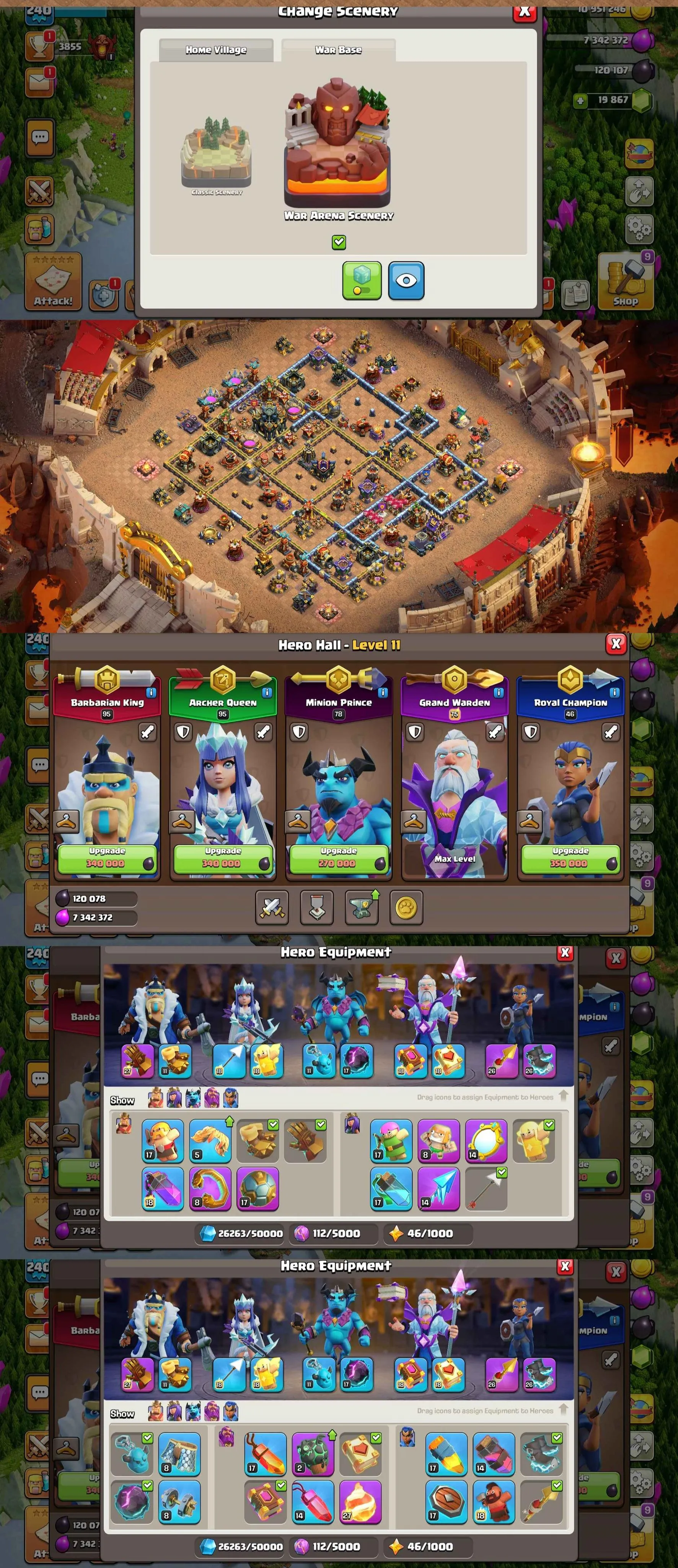 1711 | RAREST | TH17 MAX ID | 1x LEAGUE SKIN | WAR ARENA | GEMS-19867 | HERO'S: 95-95-78-75-46 | 10 EPIC EQ | 5 SKIN