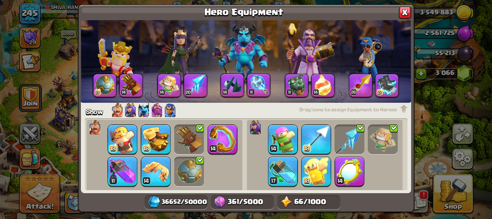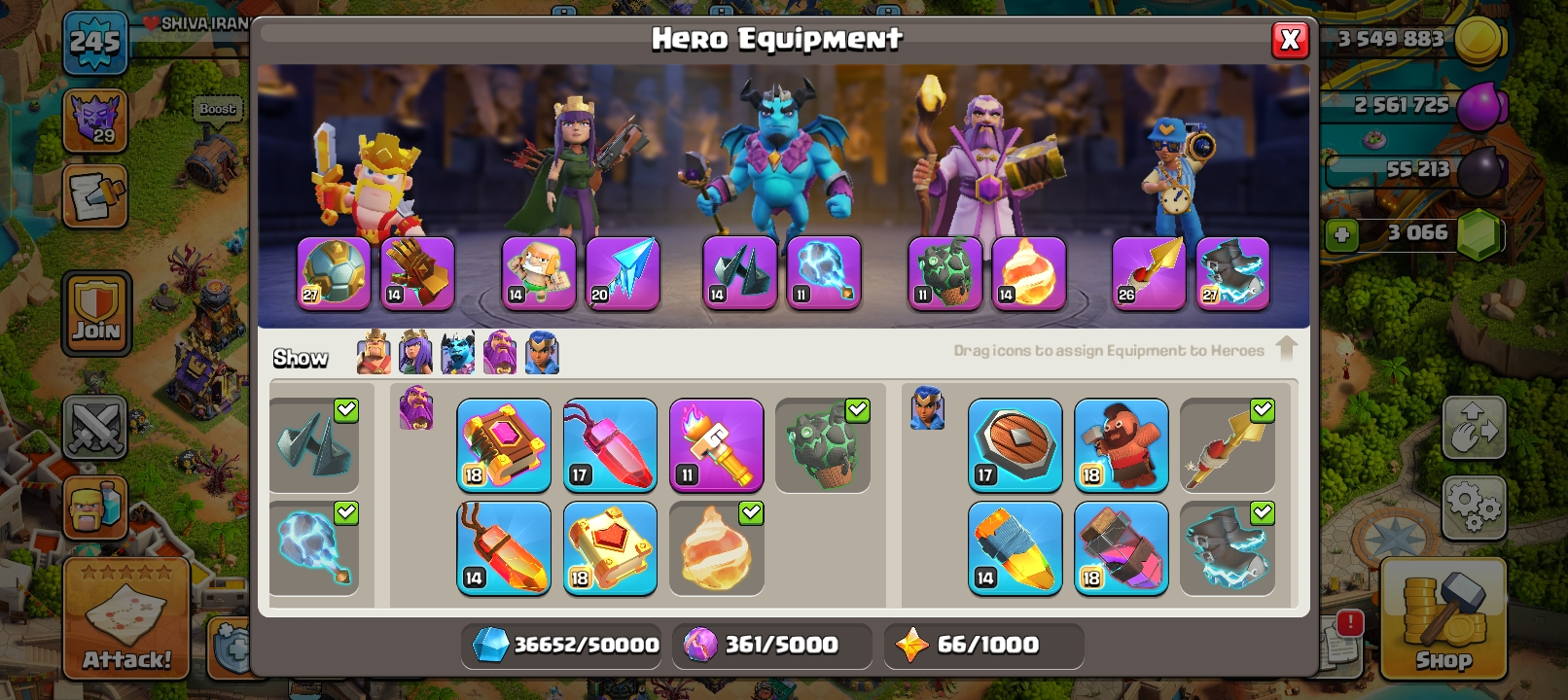 245XP TH17😍13 EPIC EQUIPMENTS 🥶HEROES[83-96-64-71-43]🔥SAFE AND SECURE ⚡ INSTANT DELIVERY 🚚