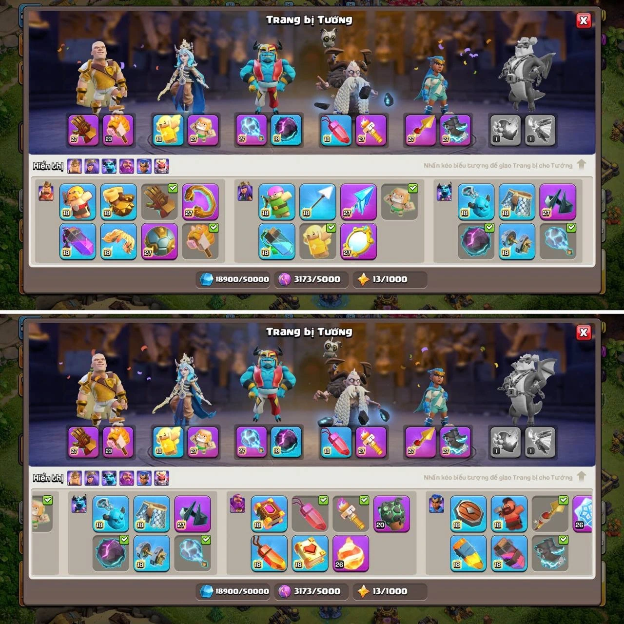 ♻️ 33 EQUIPMENT MAX ♻️ TH 18 MAX ALMOST ♻️ 13 EPIC MAX ♻️ MAX HEROES ♻️ DEFENCE MAX ALMOST ♻️ PROFILE MAX ALMOST ♻️ HIGH SKINS ♻️ STACKED ♻️ INSTANT ACCESS ♻️ S09