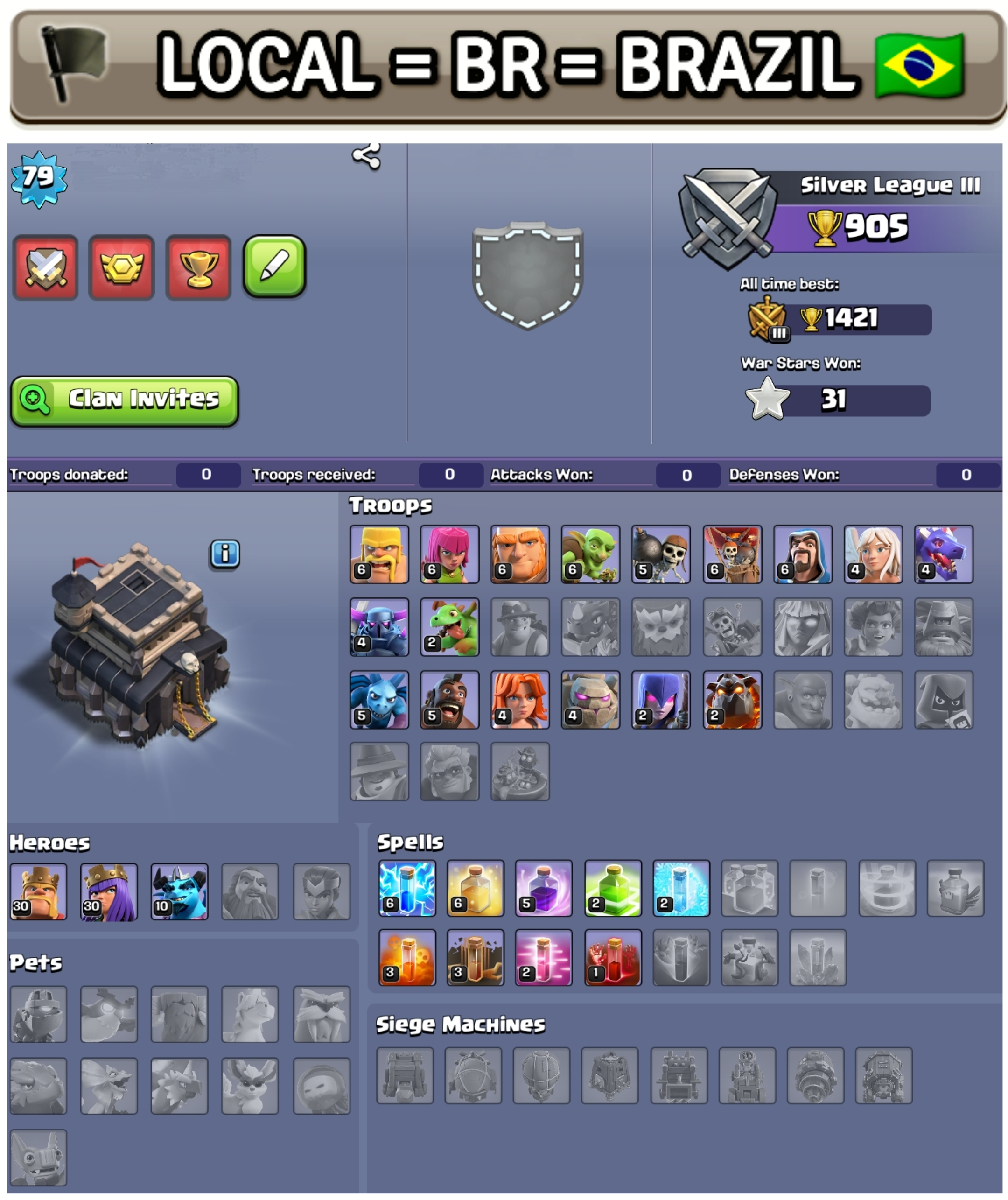 💥45% OFF SALE💥 LOCAL BRAZIL 🇧🇷♨️ TOWN HALL 9 PURE MAX ♦️ HEROES { BK 30 , AQ 30 , MP 10 } 💫 79 XP LVL 💥 OP MAGIC ITEMS 🩸 40 CWL MEDALS ⚡ LOT OF OBSTACLES 💕 FAST DELIVERY 🚚. #KB