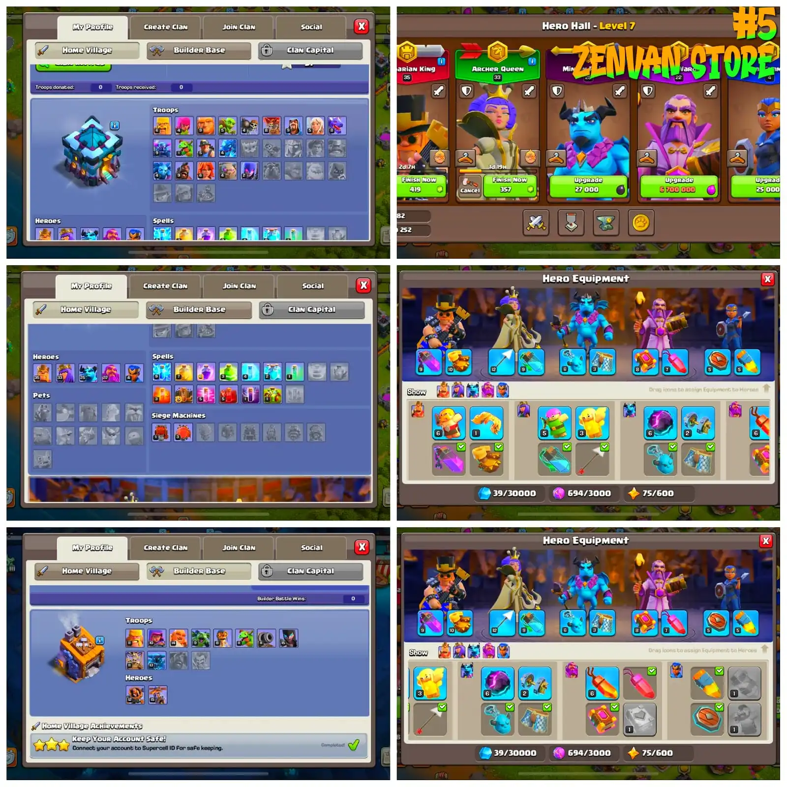 #5 🏰 TH13 Account | 🔱 BK35 👑 AQ33 🧙 GW22 🗡️ RC4 👾 Minion Prince 25 | 🧰 Hero Hall 7 (Equip up to L10) | 🏆 2,492 | 💎 923 | 🧱 BB 2,643 | 🚚 Fast Delivery ✅ Safe