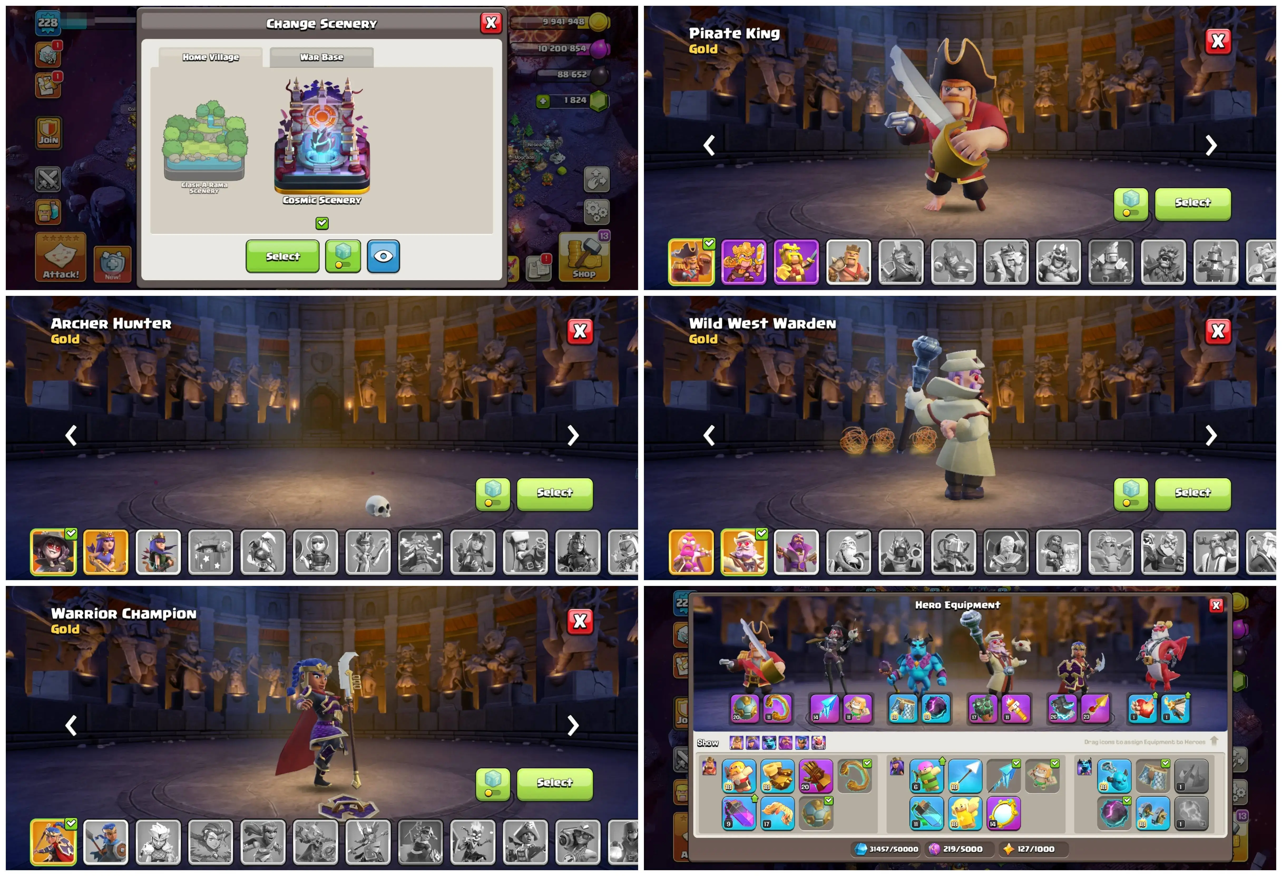 🏰 TH18 🛡️ Good Defence + 🏚️ Full Max Builder Base | 💎 1,824 Gems | 📈 Lvl 228 | 🦸♂️ Heroes 58/75/82/36/50 | 👕 8 Skins | ⚔️ 12 Epic Eq. | 🆔 M3766 !MKG016850