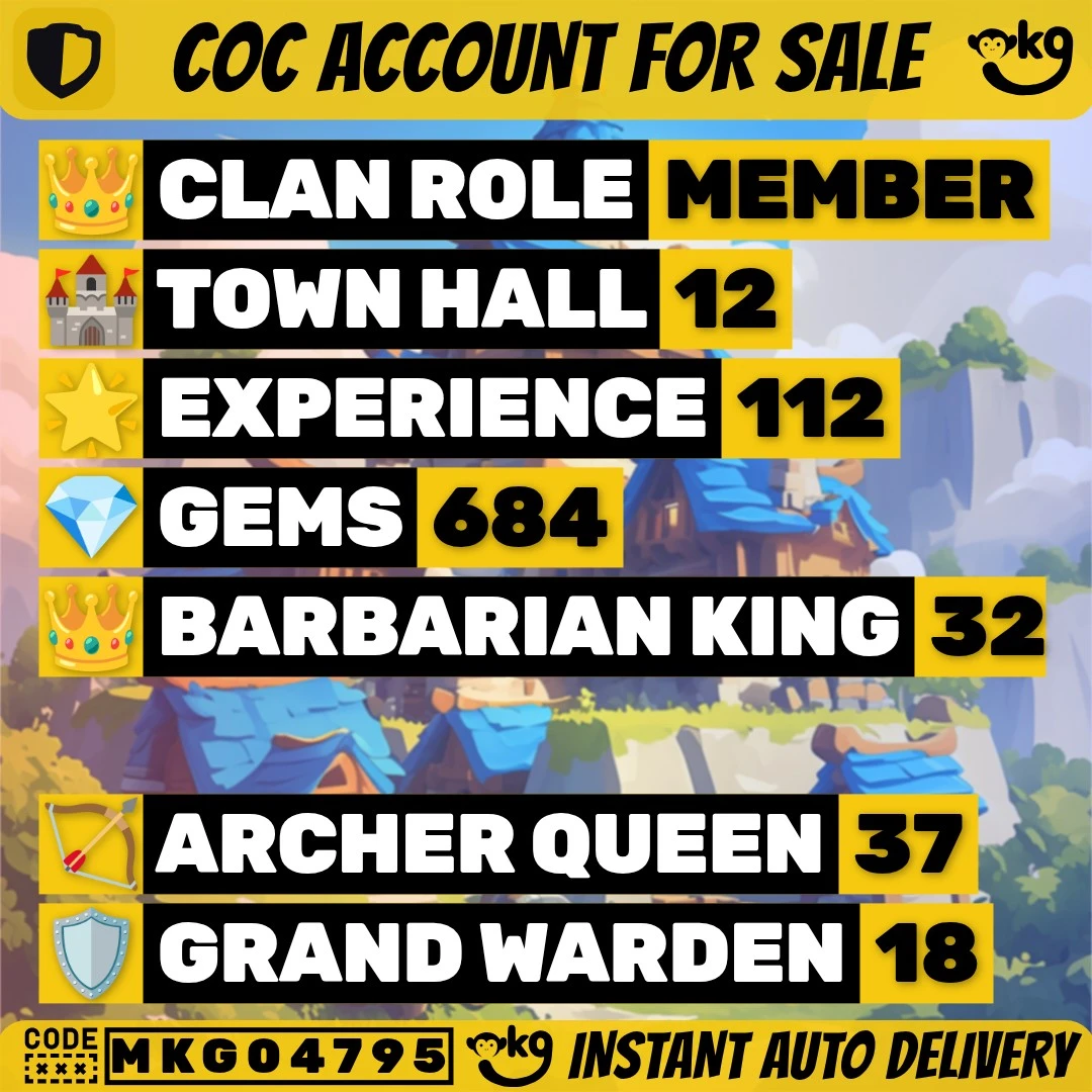 🔥 Clash of Clans 💎 TH12 ✨ Level 112 ✨ BK32 AQ37 MP20 GW18 ✨ 684 Gems 🔰 Complete Access 🔥 Instant Delivery !MKG04795