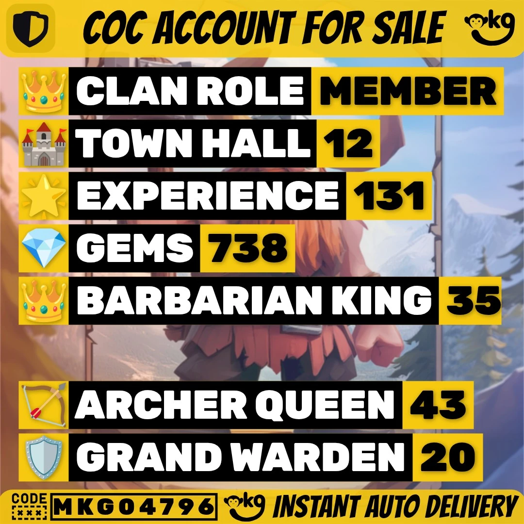 ✨ Clash of Clans 🏆 TH12 ✨ Level 131 ✨ BK35 AQ43 MP20 GW20 ✨ 738 Gems 🔰 Complete Access ✨ Instant Delivery !MKG04796