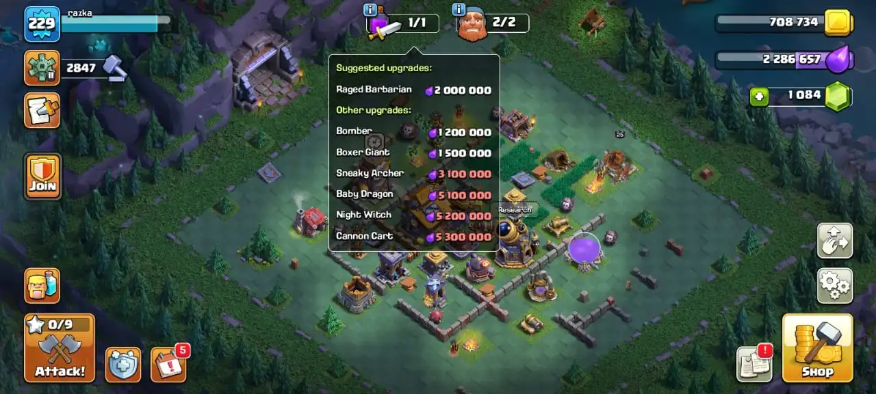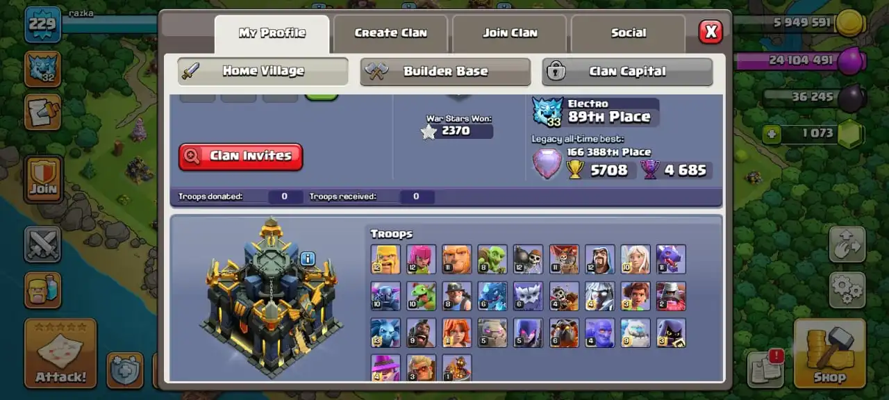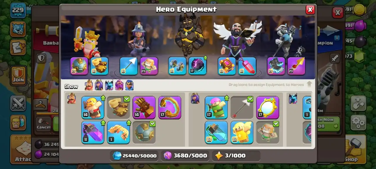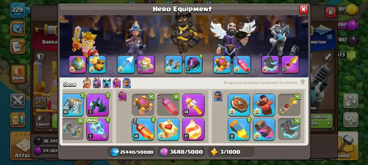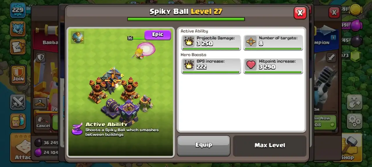 Big sale☠️max spiky ball and electro boots🔥TH 17 almost max🔥high heroes level 97/97/64/75/47☠️11 epic equipment⚒️6 builder’s✅free name change✅6 heroes skin