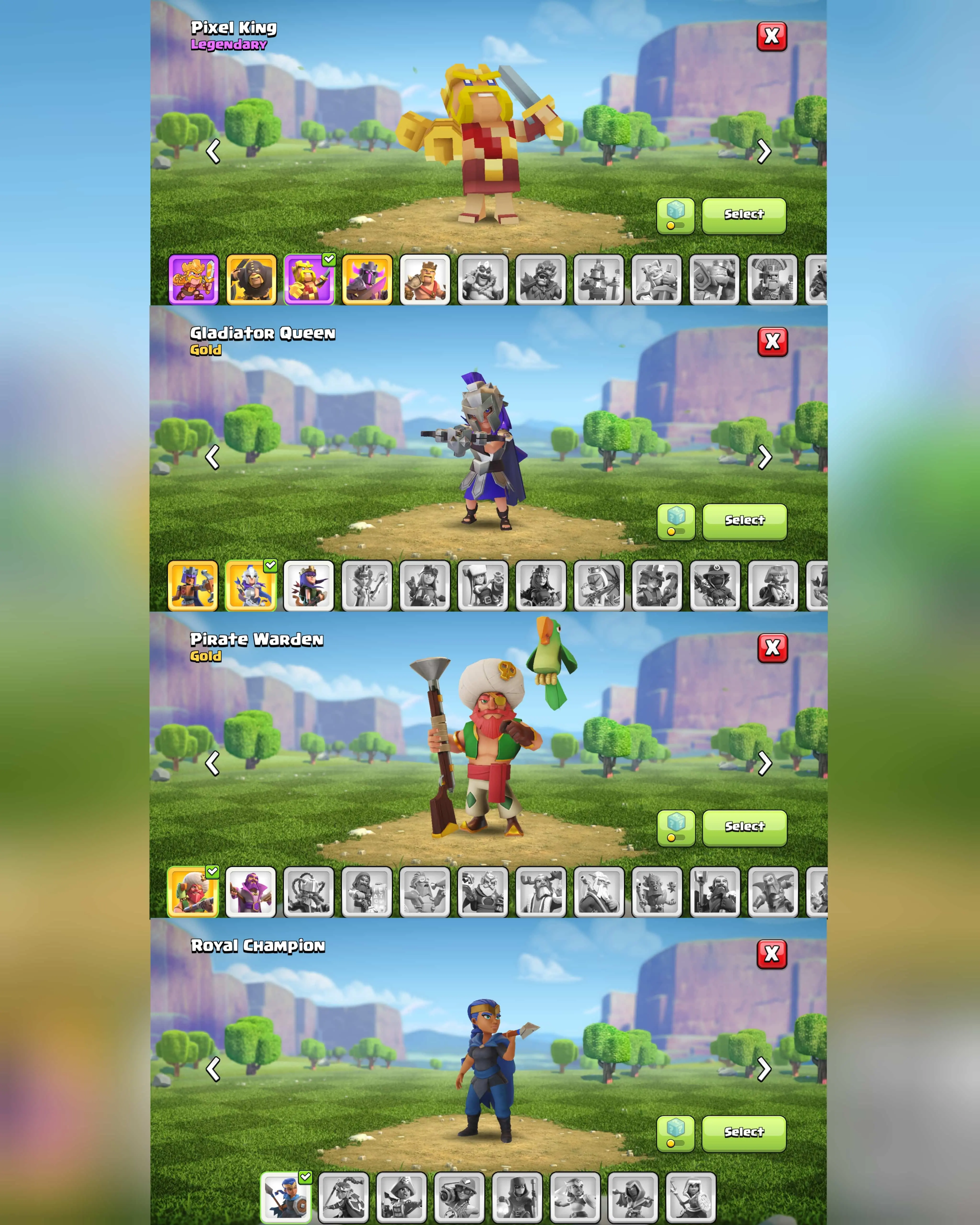 C081 TH13 PIXEL SCENERY ⸱ XP180 ⸱ 543 GEMS ⸱ CN 2000 GEMS ⸱ BK72 SKIN4 GG16 ⸱ AQ75 SKIN2 ⸱ GW50 SKIN PIRATE WARDEN