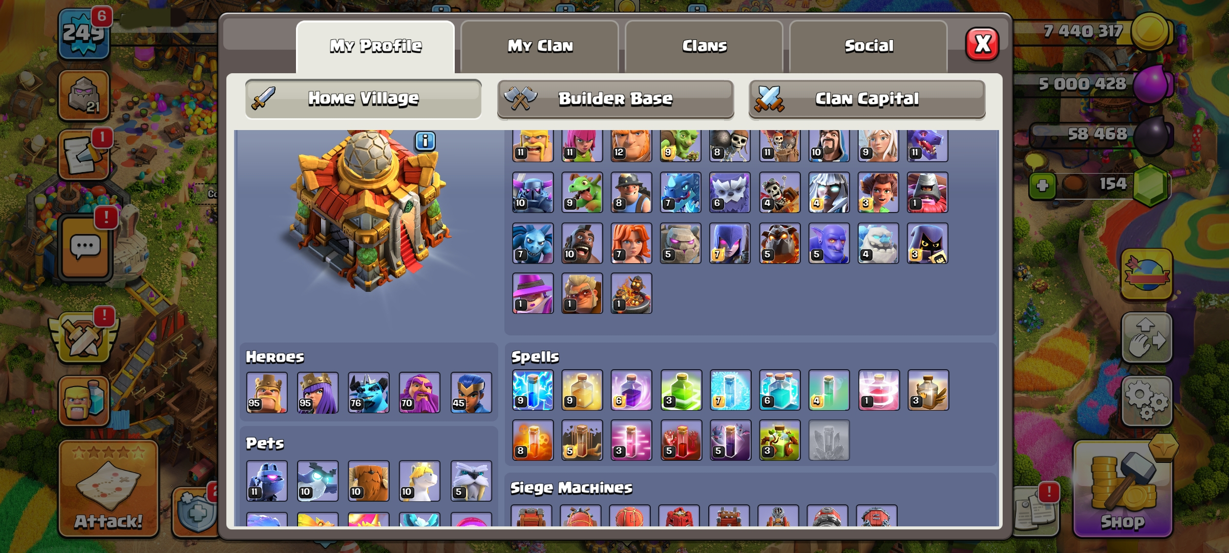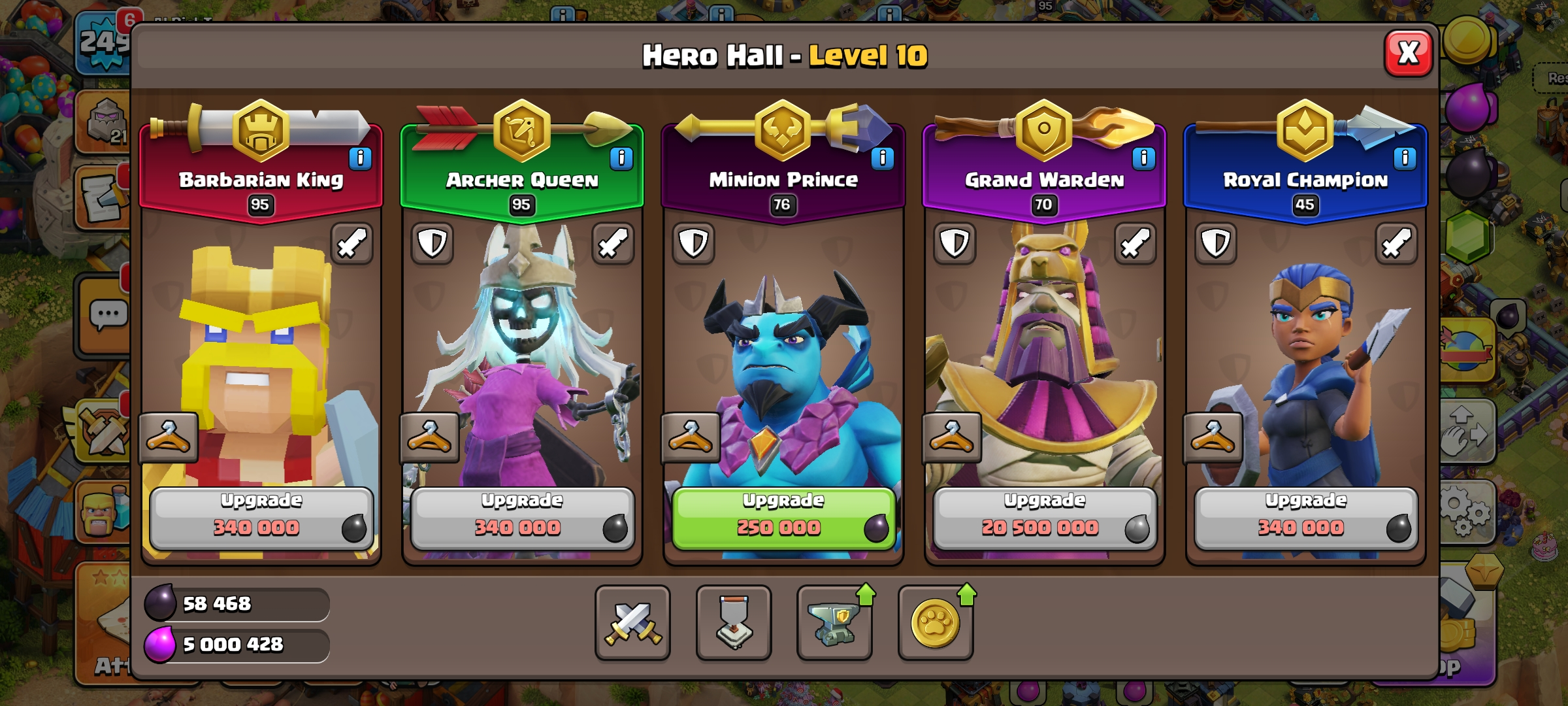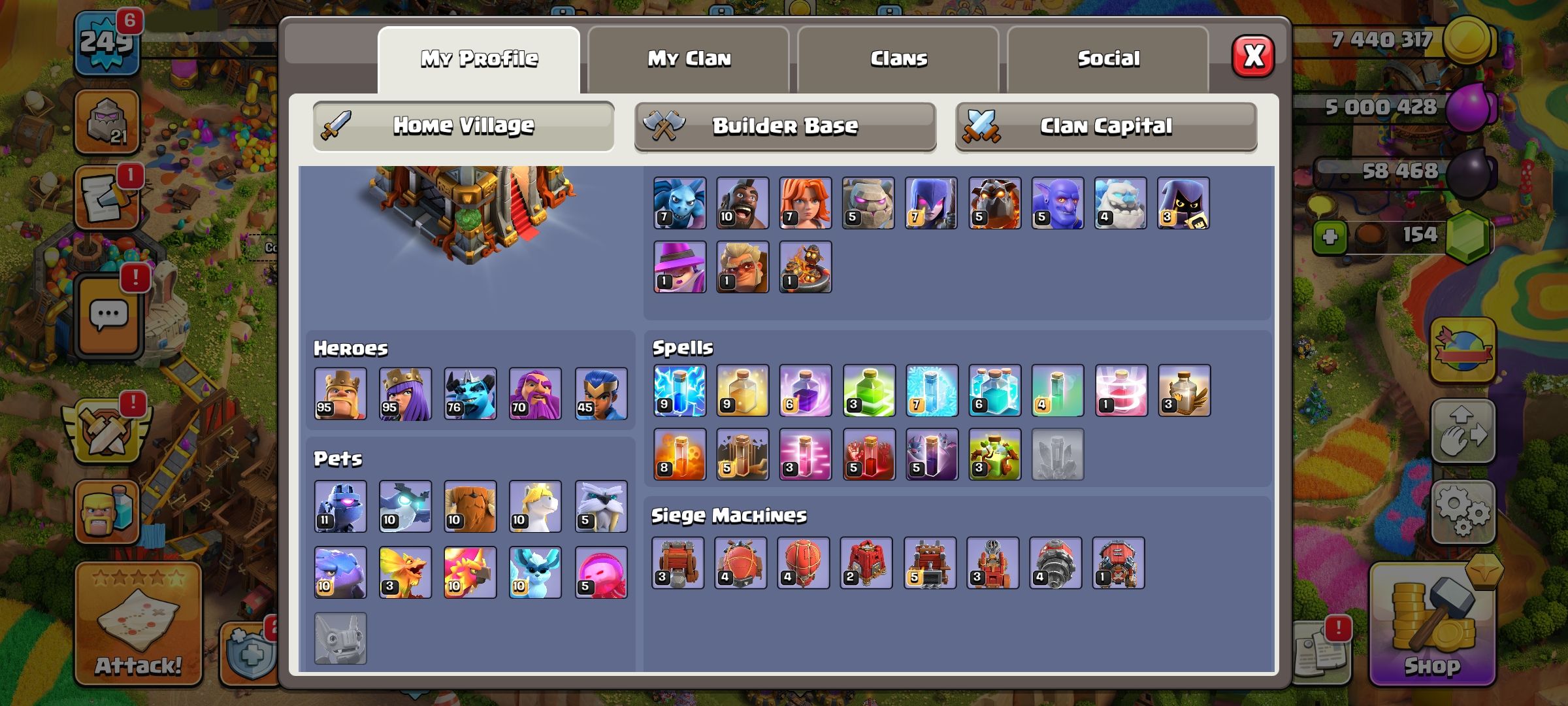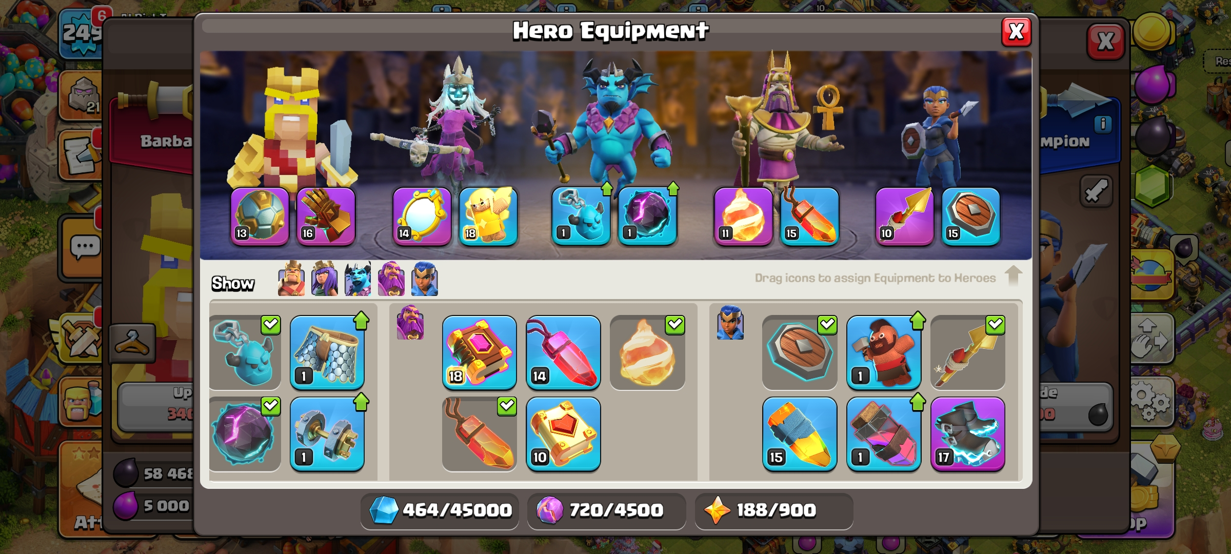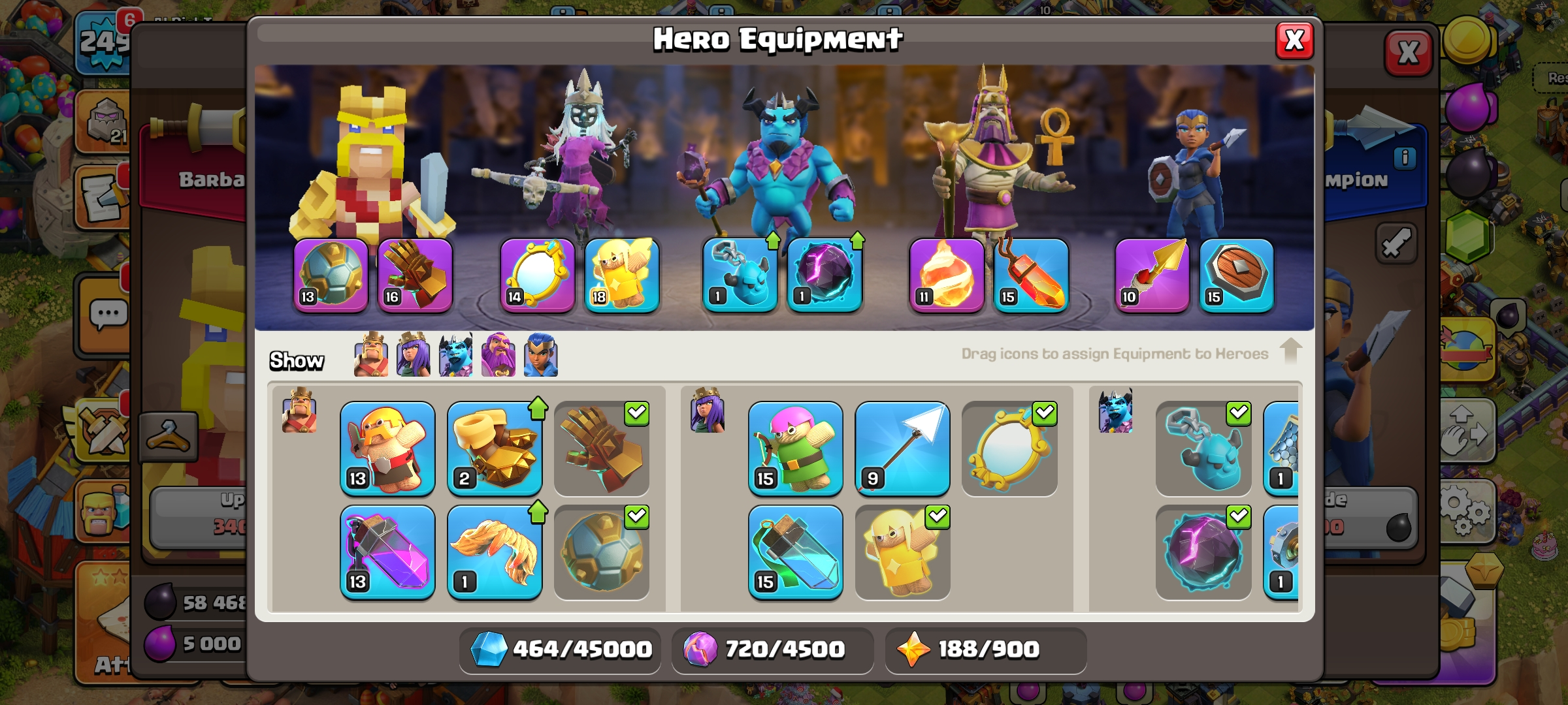 CC-77 TH16/LV 248 [ 7 Epic Equipments ] Heroes 95/95/74/70/45 | 4 Maxed Heroes | 6 Hero Skins | Painter Scenery | Good Walls & T