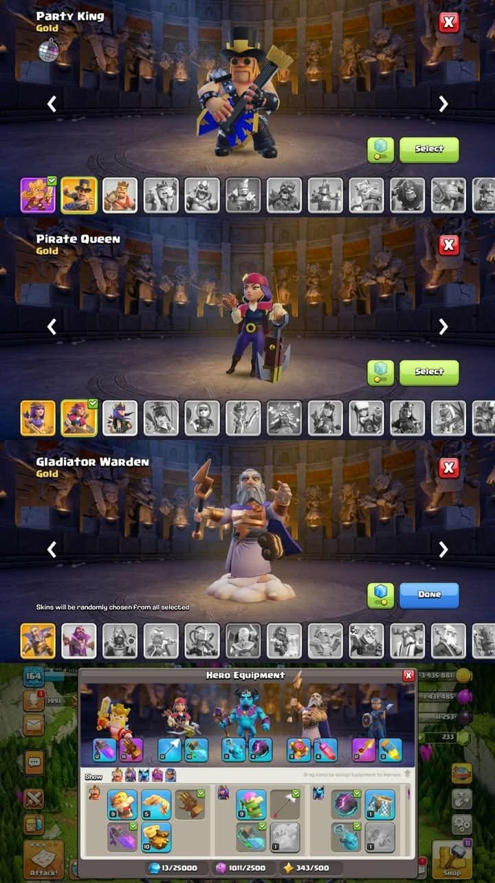 DARK BLUE WALL ➠GIANT GUNGLET(15) ➠ROCKET SPEAR (12) ➠MAGIC SCENERY ➠5 SKIN ➠HEROS: 57/59/40/27/17 ➠TH 17 ➠XP 164 ➠LOTS OF MAGIC ITEM