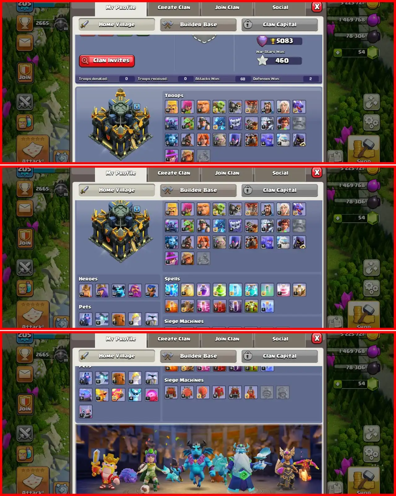 Gorgeous Th 17 | Max Red Dfnc | 75-83-65-37 High Lvl Heros | Fire Profile | Builder Base Max | 9 Epic All High lvl | Decent Walls | Best n cheap |