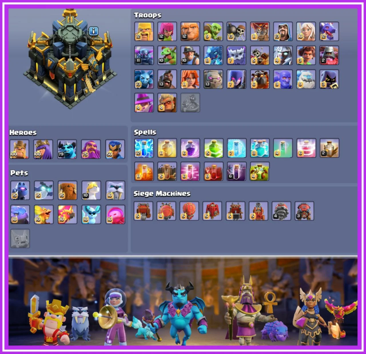 ✨️ [RAREST] 💎 2014-2024 TREES🎄 ALL ANNIVERSARY CAKES🎂 7 EPIC EQUIPMENTS MAXED😈 FULL MAX TH 17🔥 4 SCENERIES 24 HERO SKINS👑 4 HEROES MAXED💪 100% MAX BUILDER BASE💫 18.8K LEGEND TROPHIES🏆 GLOBAL RANK🎯 6K ATB🥶 3.5K WAR STARS🌟 INSTANT DELIVERY🚚