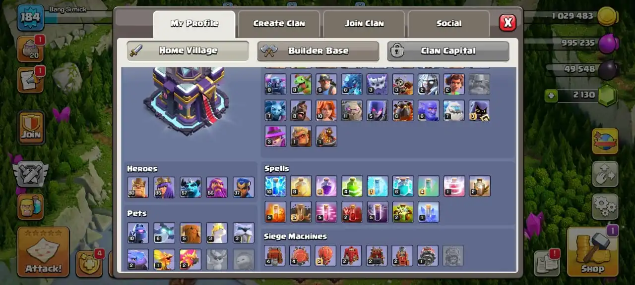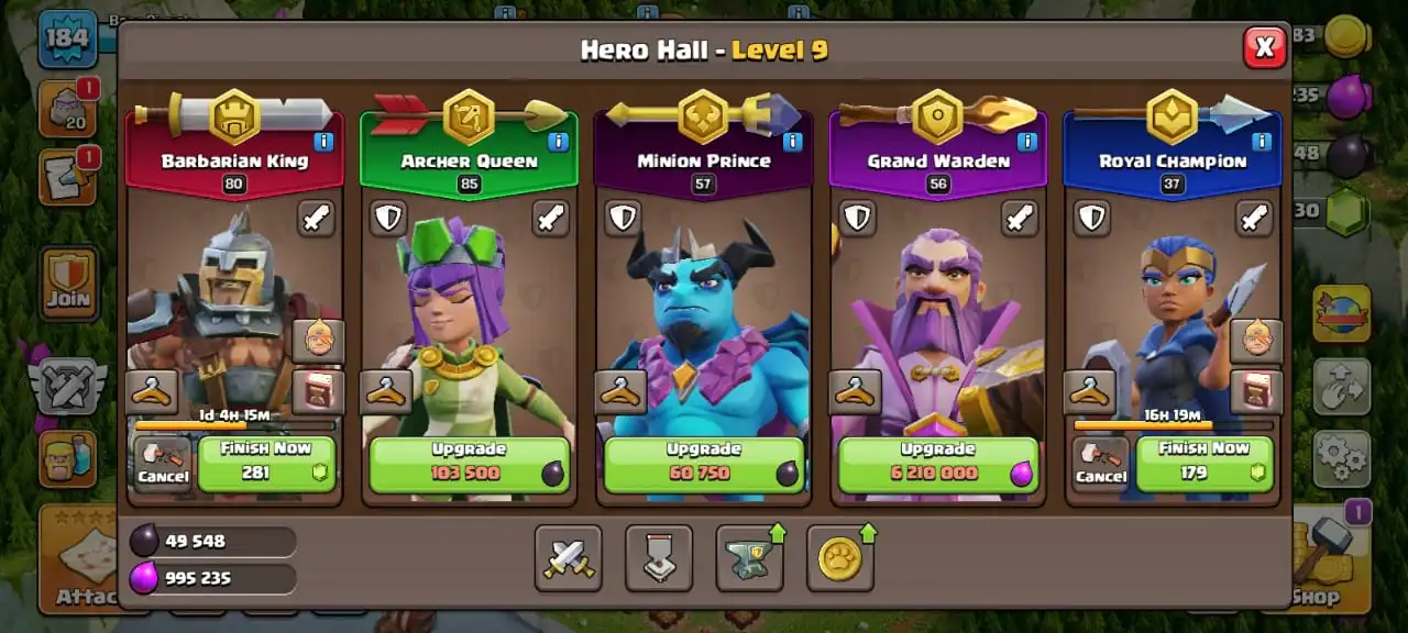Sale🔥TH 15 almost max🔥high heroes level 80/85/57/56/37☠️7 epic equipment✅cn on✅8 heroes skin