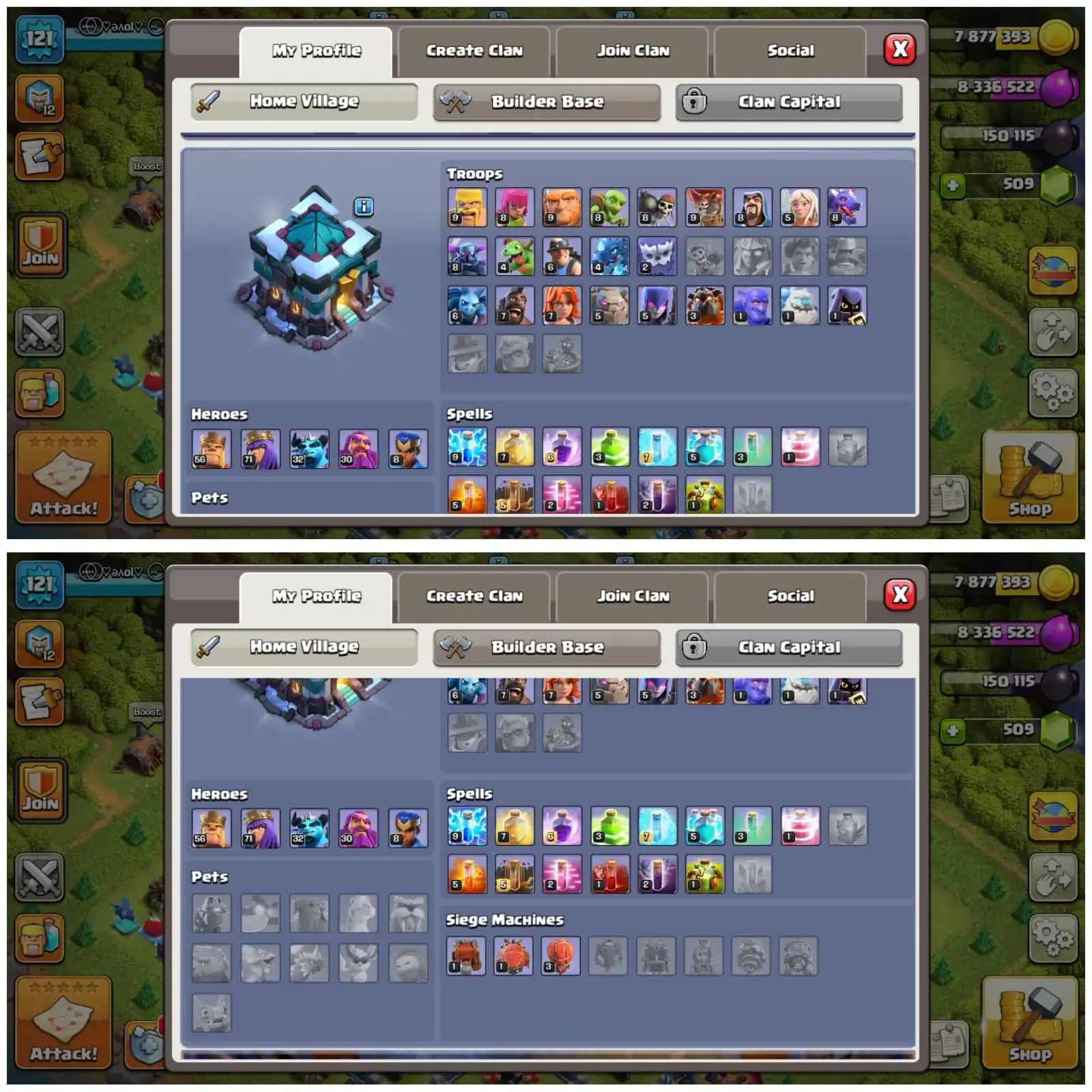 TH 13 ACCOUNT { 900+ CWL MEDALS } || EXP LVL 121 || GOOD EQUIPMENTS || HERO SKIN || NC 1000 GEMS || SAFE ACCOUNT || IOS & ANDROID || INSTANT DELIVERY