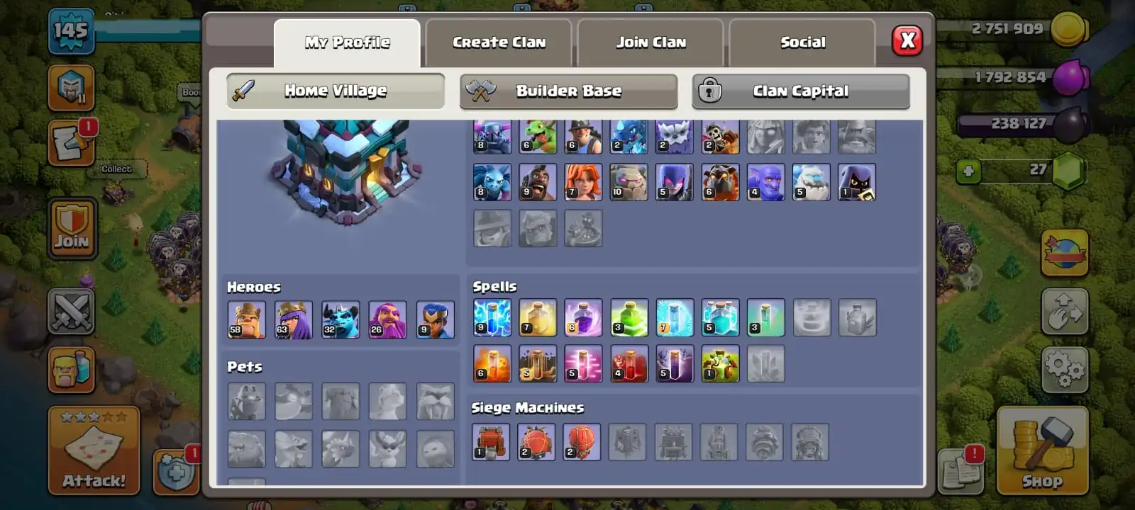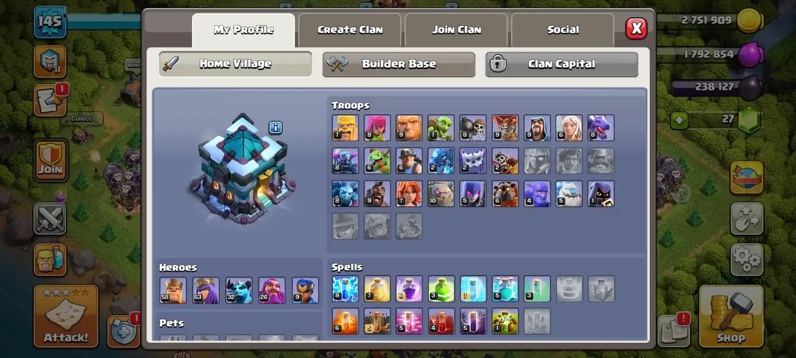 TH 13 ALL MOST MAX🔥MENDALS 207🔥HEROES 58-63-32-26-9 GIANT GAUNTLET & SPIKY BALL & FIRE BALL ON🔥MAGIC ITEMS READY🔥FULL ACCESS ACCOUNT🔥