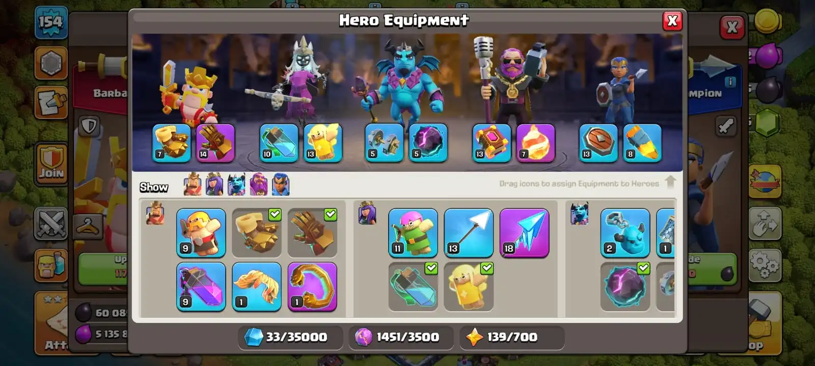 TH 13 SEMI MAX🔥FREE CHANGE NAME🔥HEROES 65-70-42-45-17 GIANT GAUNTLET & FROZEN ARROW & FIRE BALL ON🔥PIXEL SCENERY🔥MAGIC ITEMS READY🔥FULL ACCESS ACCOUNT🔥