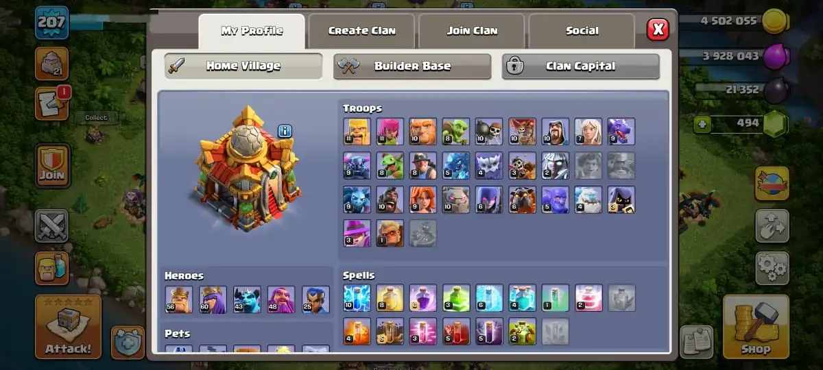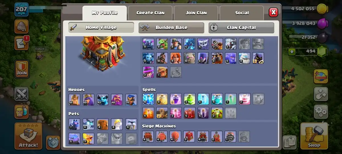TH 16 SEMI MAX🔥HEROES 56-60-43-48-25🔥JUNGLE & MAGIC SCENERY🔥MAGIC ITEMS READY🔥FULL ACCESS ACCOUNT🔥