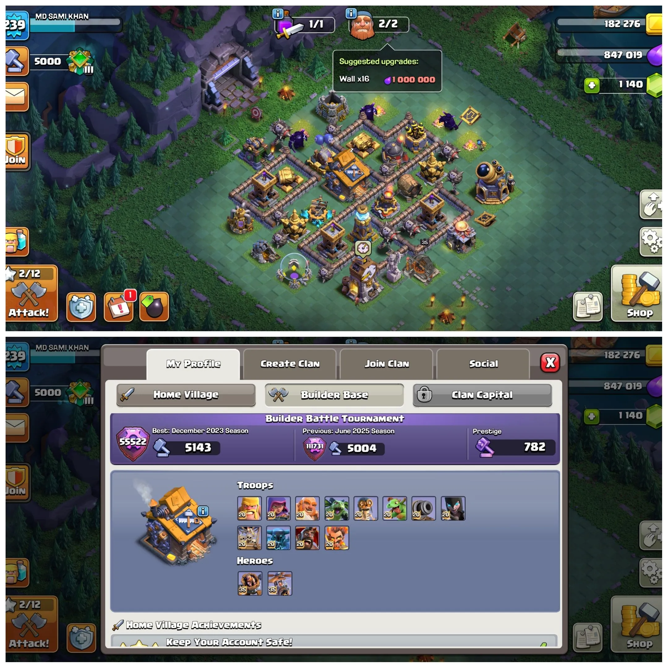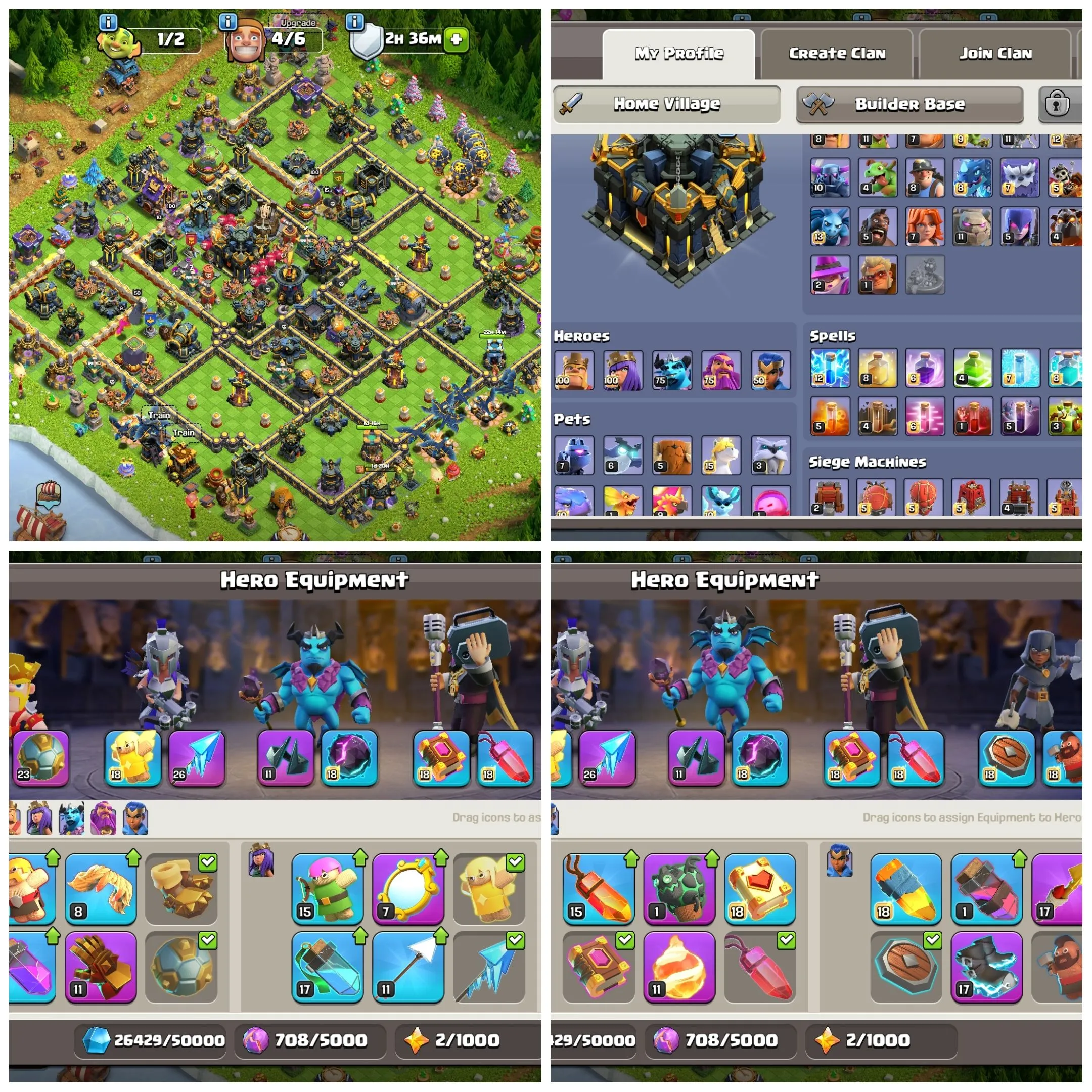 TH 17 Max💥Hero 100-100-75-75-50💥All Defense Max💥Wall MAx💥Builder Hall Max💥Can Be changed Name💥Xp-239💥Buyer Mail Shift Process