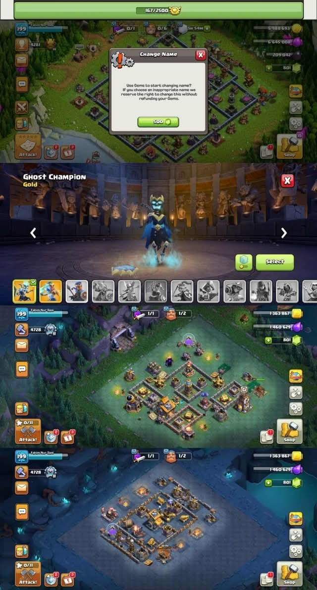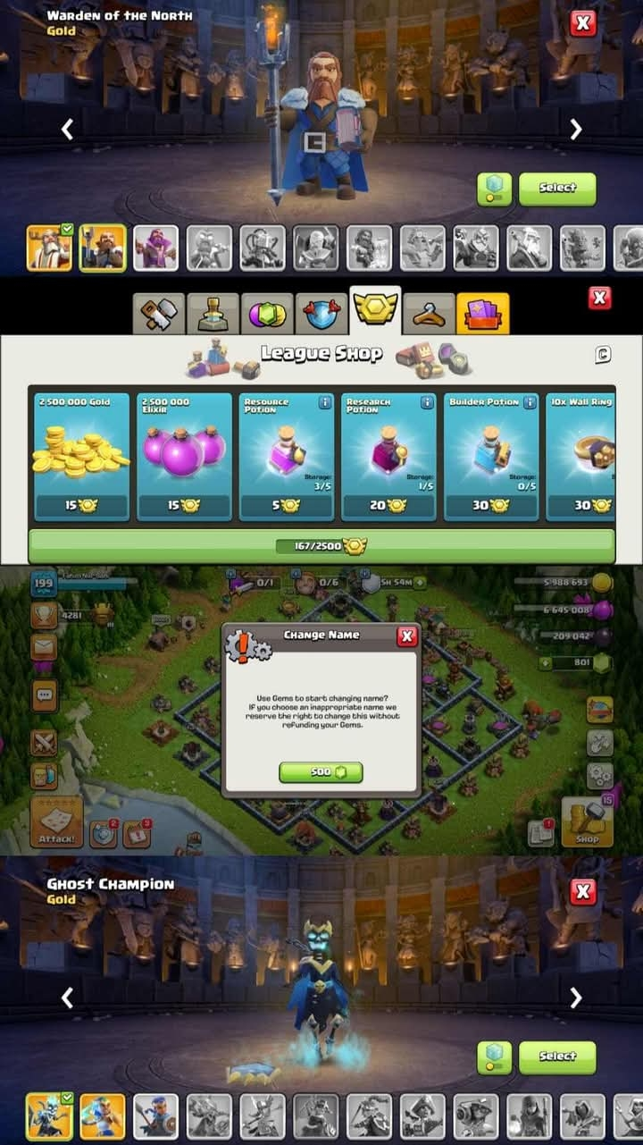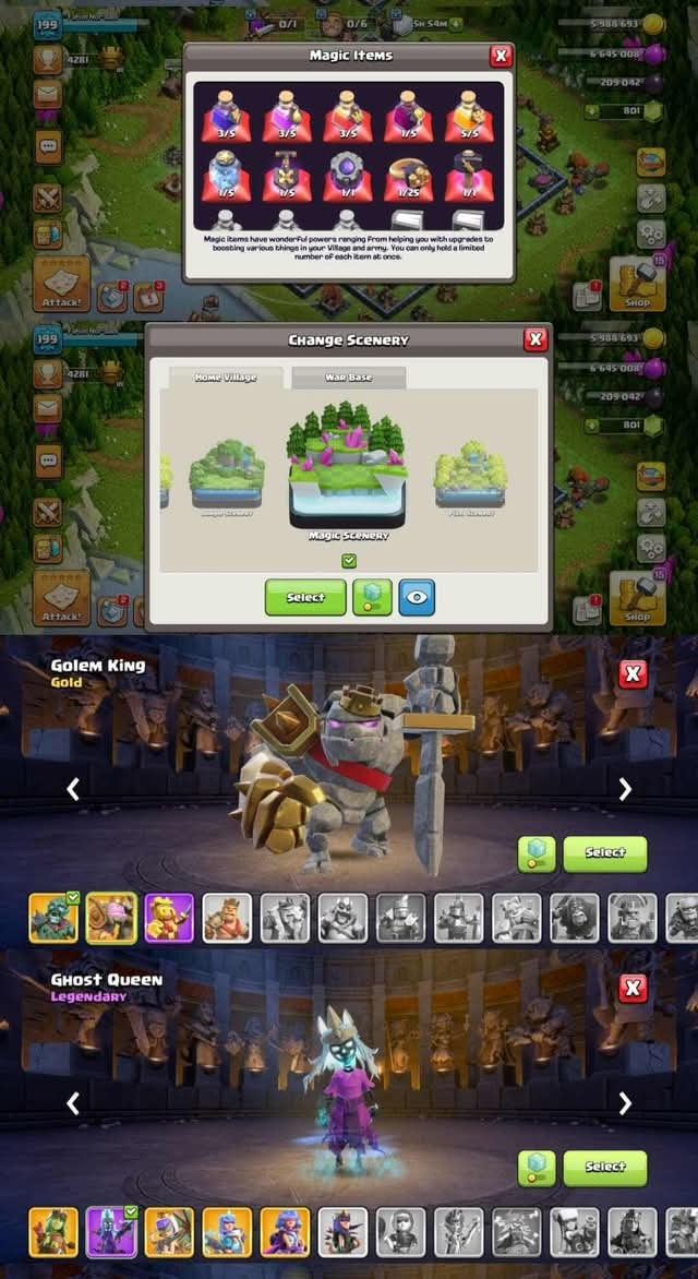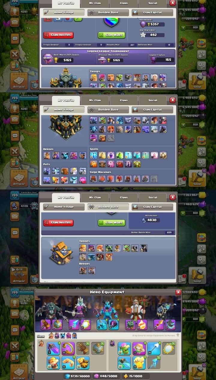 TH 17 RARE ➠8 EQUIPMENT MAX ➠9 EPIC EQUIPMENT ➠11 PAID SKIN ➠BILDER TROPOS ALL MAX ➠PETS LVL HIGER ➠HEROS: 48/61/41/34/19 ➠XP 199 ➠ LOTS OF MAGIC ITEM