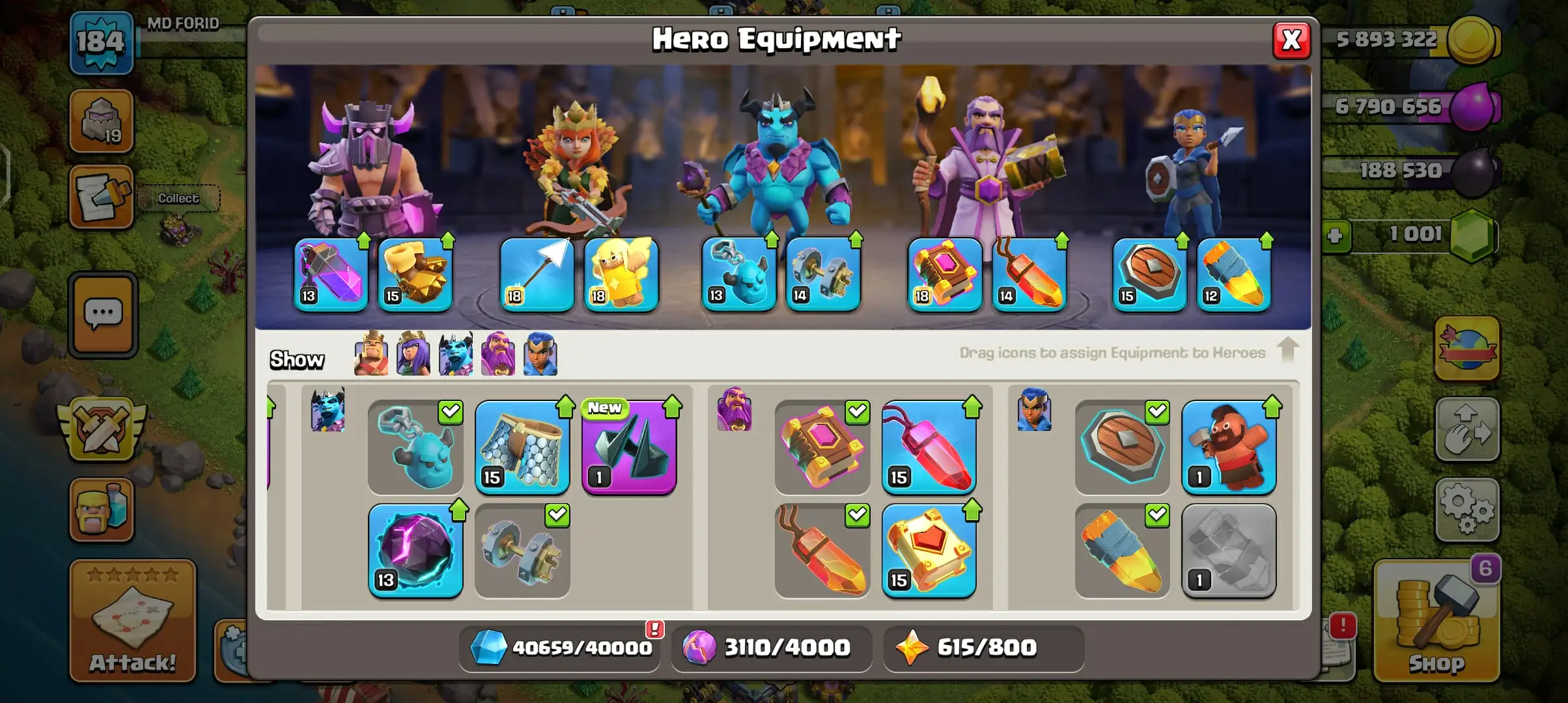 Th15🚦Heros 61/62/40/31/27🚦Golden walls🚦Gems-1001🚦Defence th15 max🚦xp-184🚦good epic🚦fresh email🚦