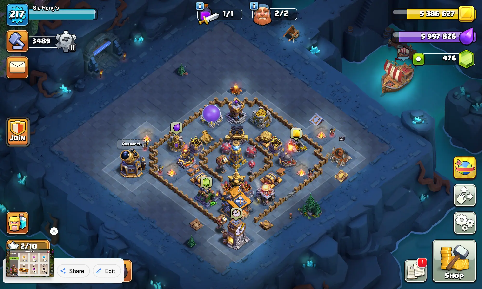 🔥💎 [TH17 100% STACKED BEAST] 🎮 Lvl 476 | 217 Gems 💎 | Heroes 53⚔️-53🏹-50👹-48🌀-32🛡️ | 🏰 BH10 + BM 22 🛠️ | 🏆 5014 Trophies 💪 | ⭐ 1730 War Stars | 🏅 1400 CWL + 3600 Raid Medals 🎯 | 💎 Magic + Epic Gear ⚔️ | ✨ NAME CHANGE ✅ | 🚀 INSTANT DELIVERY ⏳ |