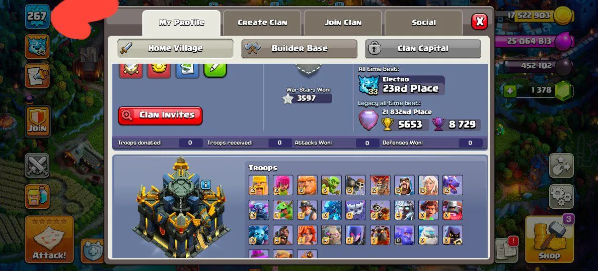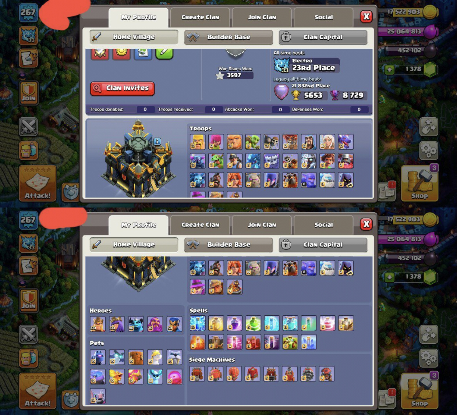 Th17 Fully Maxed | Max Base | Max Profile | 267 Xp Lvl | 7 Max Epic Equipment | 2 Scenery | 18 Heroes Skins | Fully Stacked | Nc Gems Ava | Almost Max BB | Best Almost Max Th17 | Good Stats |