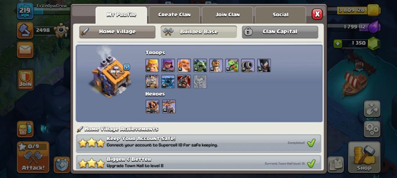 Town Hall 15 Ex all max Th 14 🔥Magic mirrow & Fireball on 🔥 Future scenery on 🔥 Change name on 🔥 Very cheap 🔥