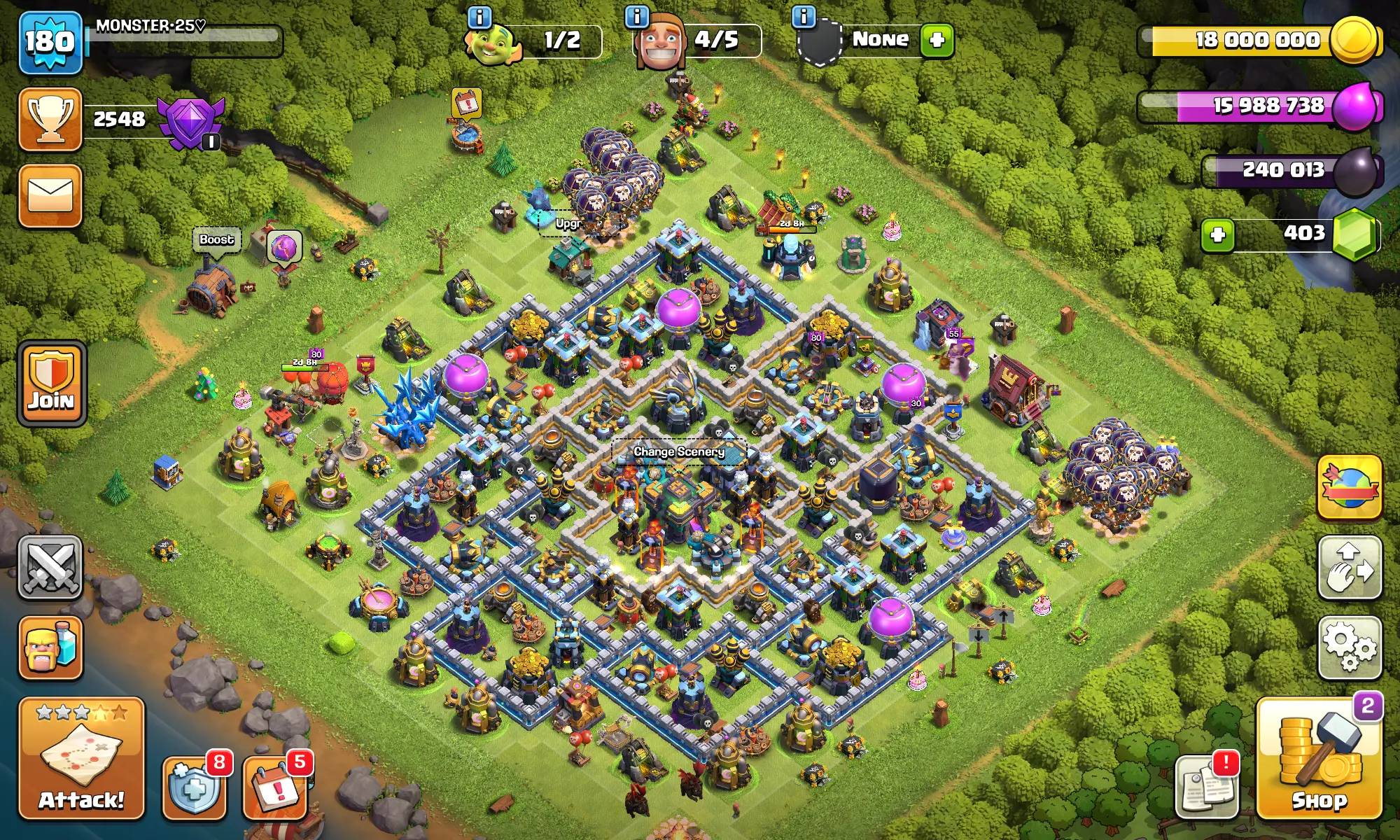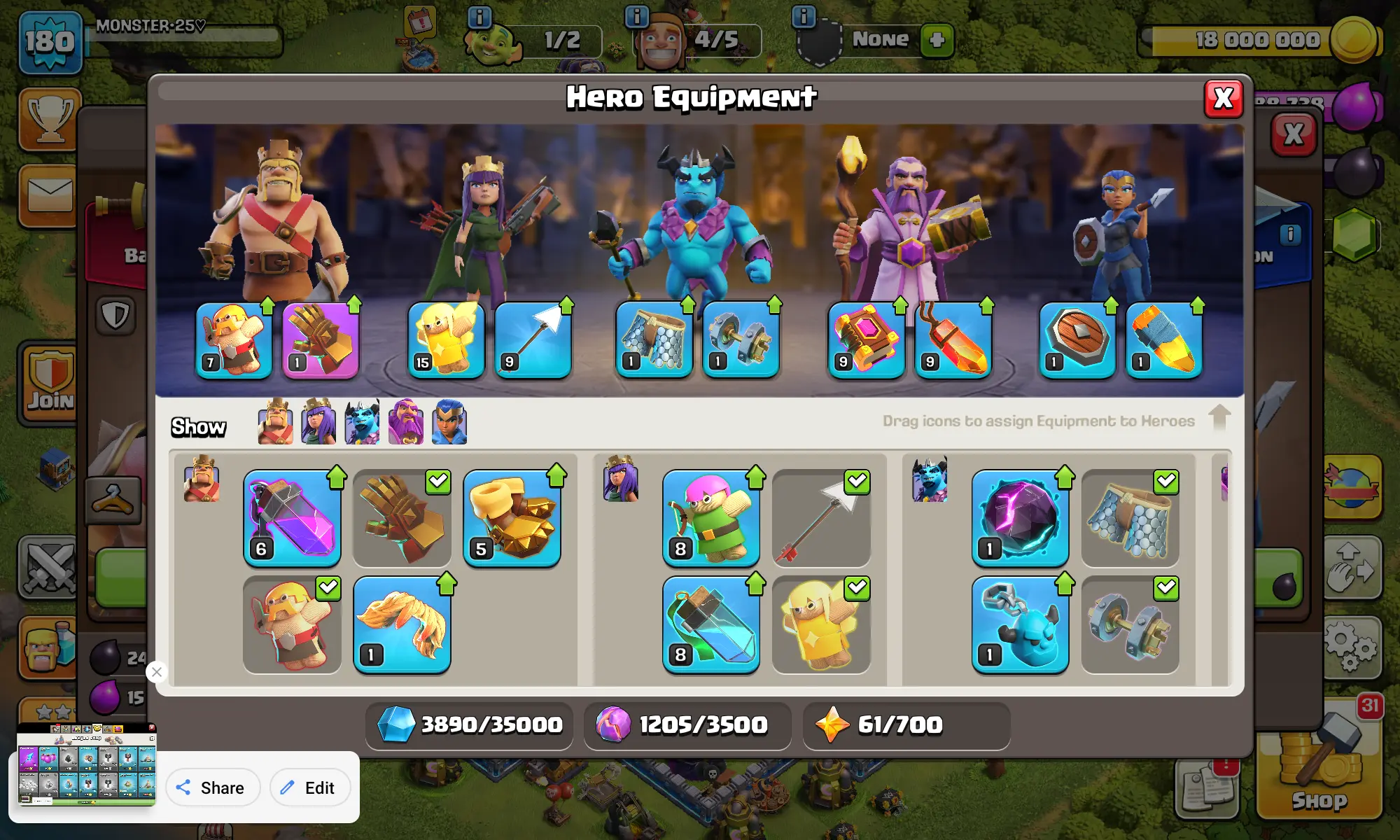 🔥💰 VERY CHEAPEST 💥 TH14💥 | 🎮 LVL 180 ⭐ | 💎 450 GEMS 💎 | ⚔️ BK 52 🏹 AQ 60 👹 MP 40 🌀 GW 40 🛡️ RC 19 | 🏰 BH8 🏰 | 🏆 4109 🏆 | 🎖️ 215 CWL • 100 RAID ✨ | ⭐ 876 WAR STARS 🌟 | 🎟️ MAGIC ITEMS 🎁 + EPIC EQUIPMENT ⚡✅ | 🔄 NAME CHANGE READY