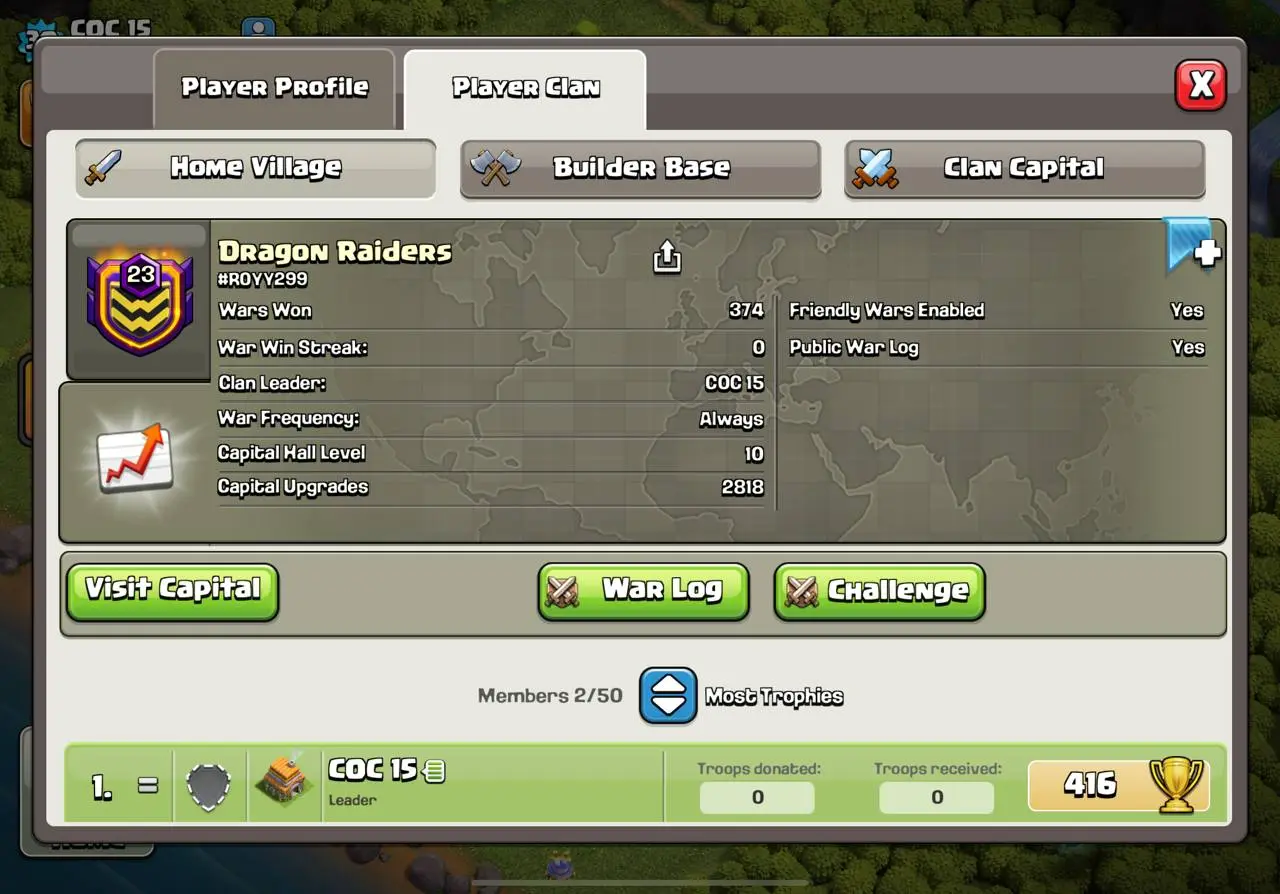 DRAGON RAIDERS 💎 LEVEL:23 💎 CAPITAL HALL:10 💎 WAR WON:374 💎 CWL:GOLD 1