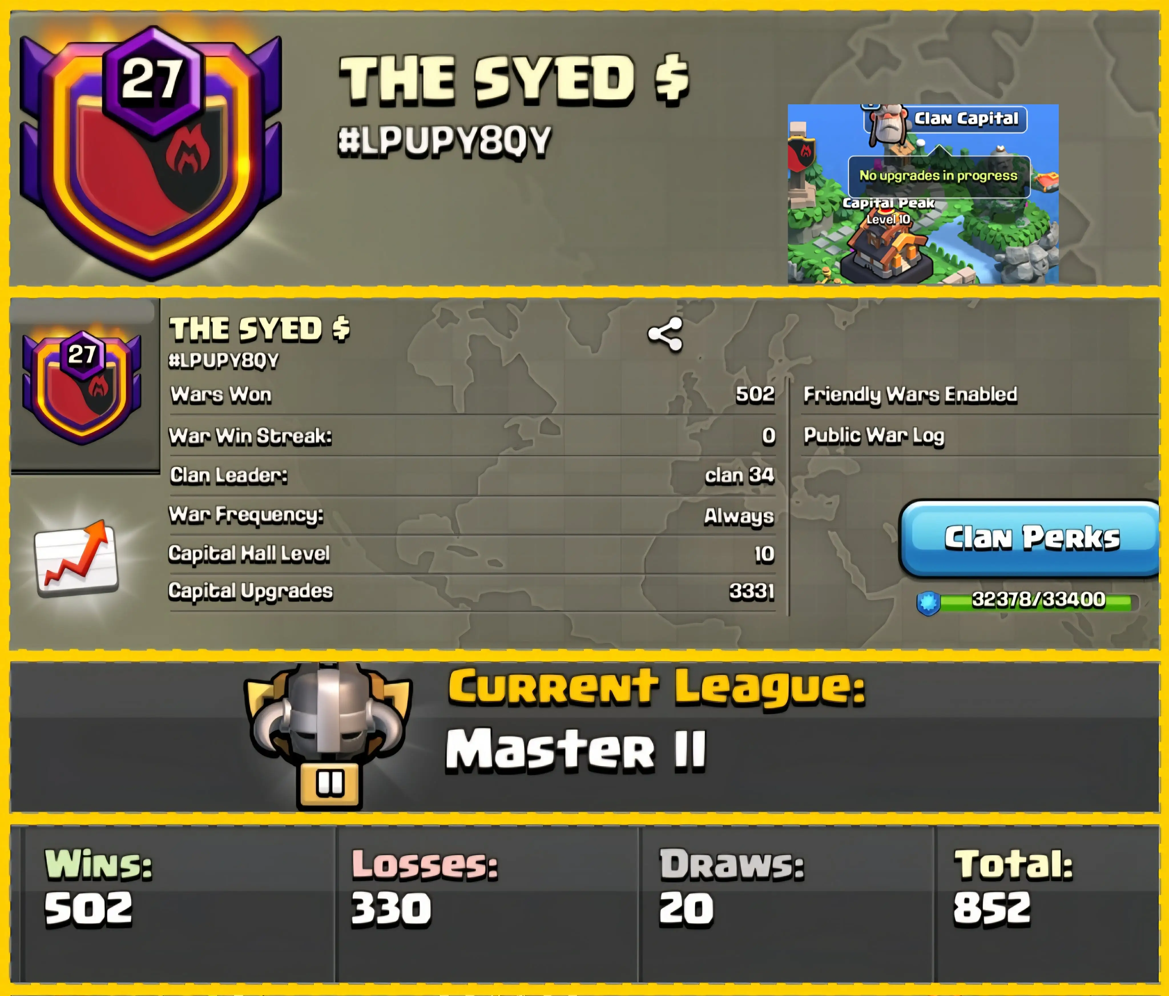Clan Level 26✔English Name ✔ CP 10 Max✔ Good And cheapest deal✔ Super Fast Delivery