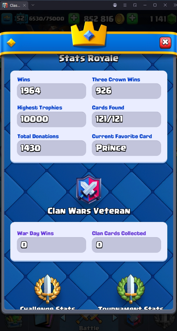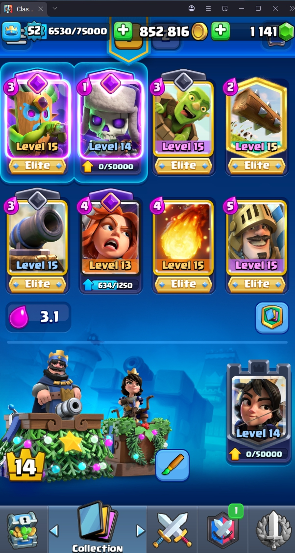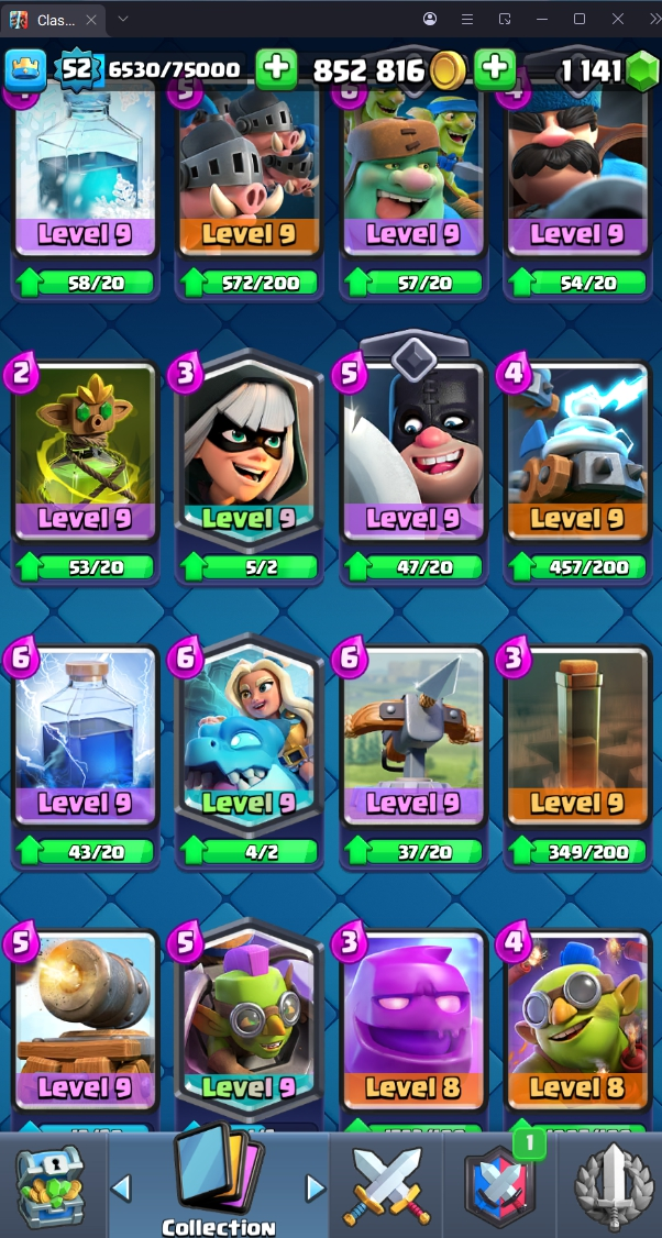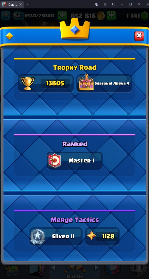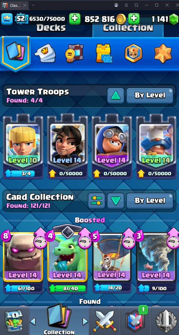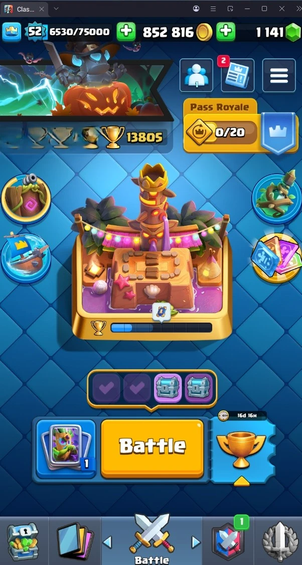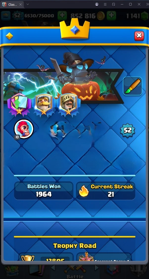 13805 TROPHY 🏆 52 LVL 💯 KT 14 👑 121 CARDS ♦️ 2 MAX CARDS 👑 6 ELITE CARDS 🔮 10 EVO 💯 EMOTE 47 🎭 #JC98V29YG ⸱ TAG ACCOUNT ♥️