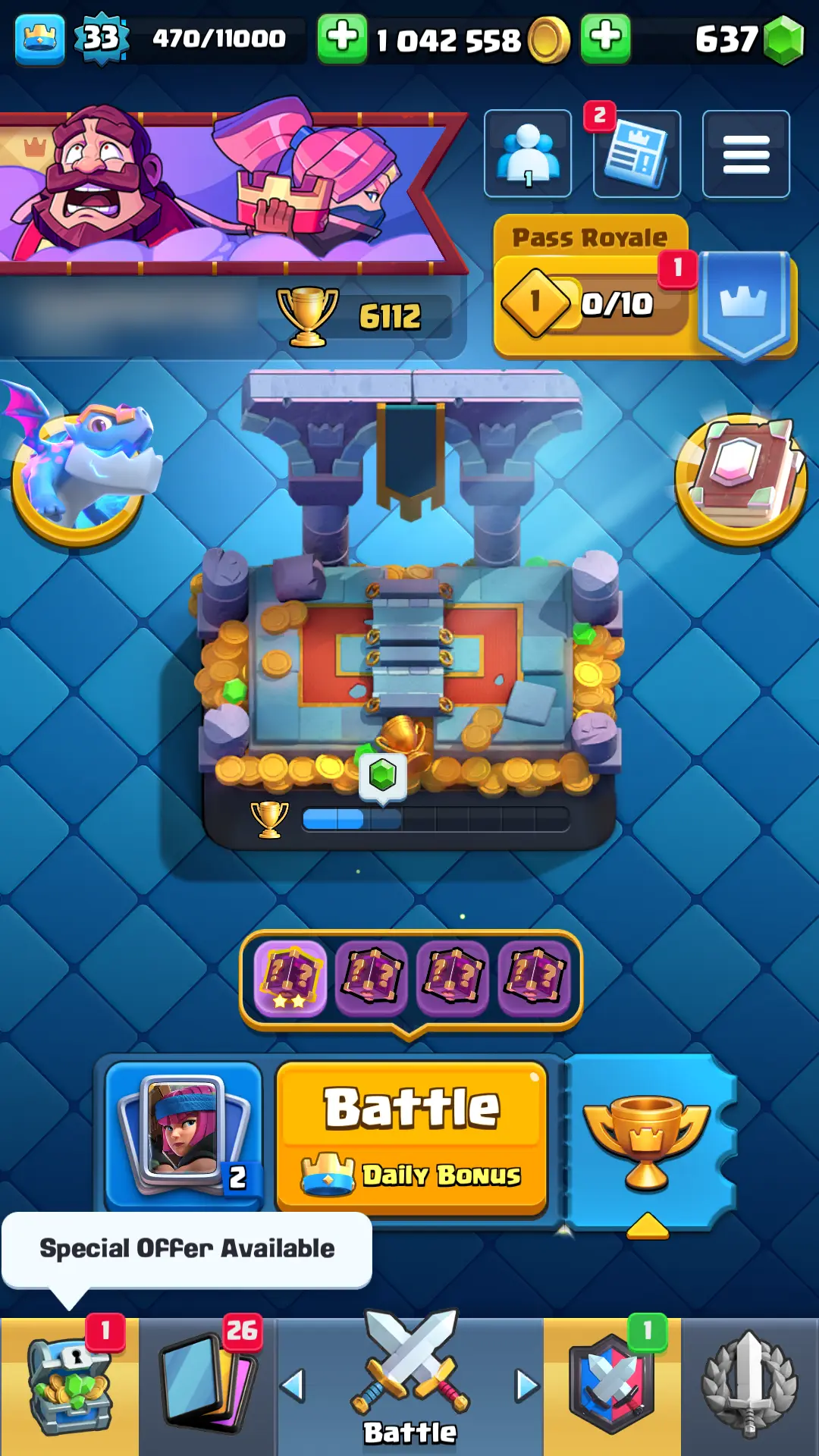 2 CHAMPIONS 🔥 6112 TROPHIES 🚀 11 KING TOWER ✨ 33 LVL 🚀 112 CARDS 🤑 18 EMOTE ✨ 1 EVO CARDS ✨ 0 MAX CARDS 💎 ANDROID & IOS 🔥 INSTANT DELIVERY