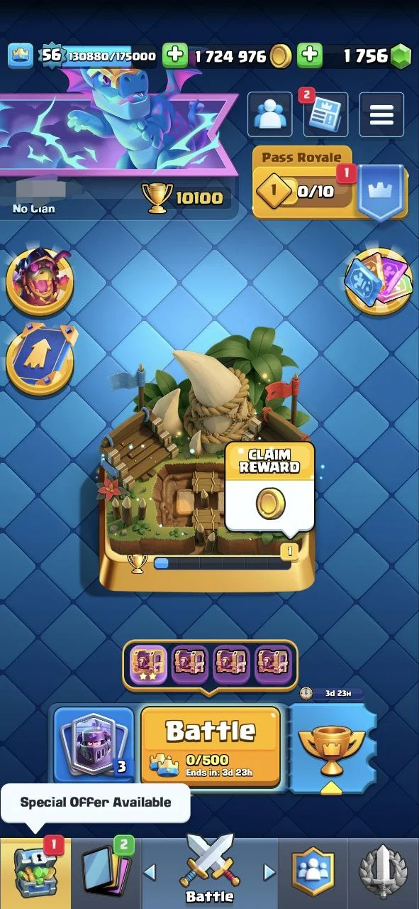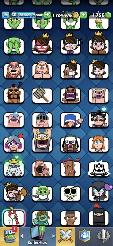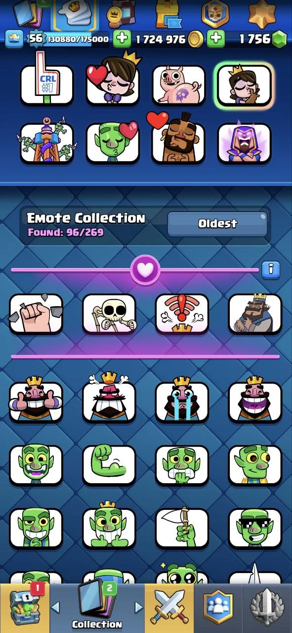30% OFF✨ RARE KISS EMOTE ✨ KT 15 🔱 LVL 56 🏆 CUPS[10100] ✨ MAX CARDS [41] ✨ ELITE [11] ✨ EVO [11] ✨ LVL 14 [30] ✨ EMOTES [96] ✨ SKINS [4] 🔱 CARDS [120] ✨ 10000% SAFE