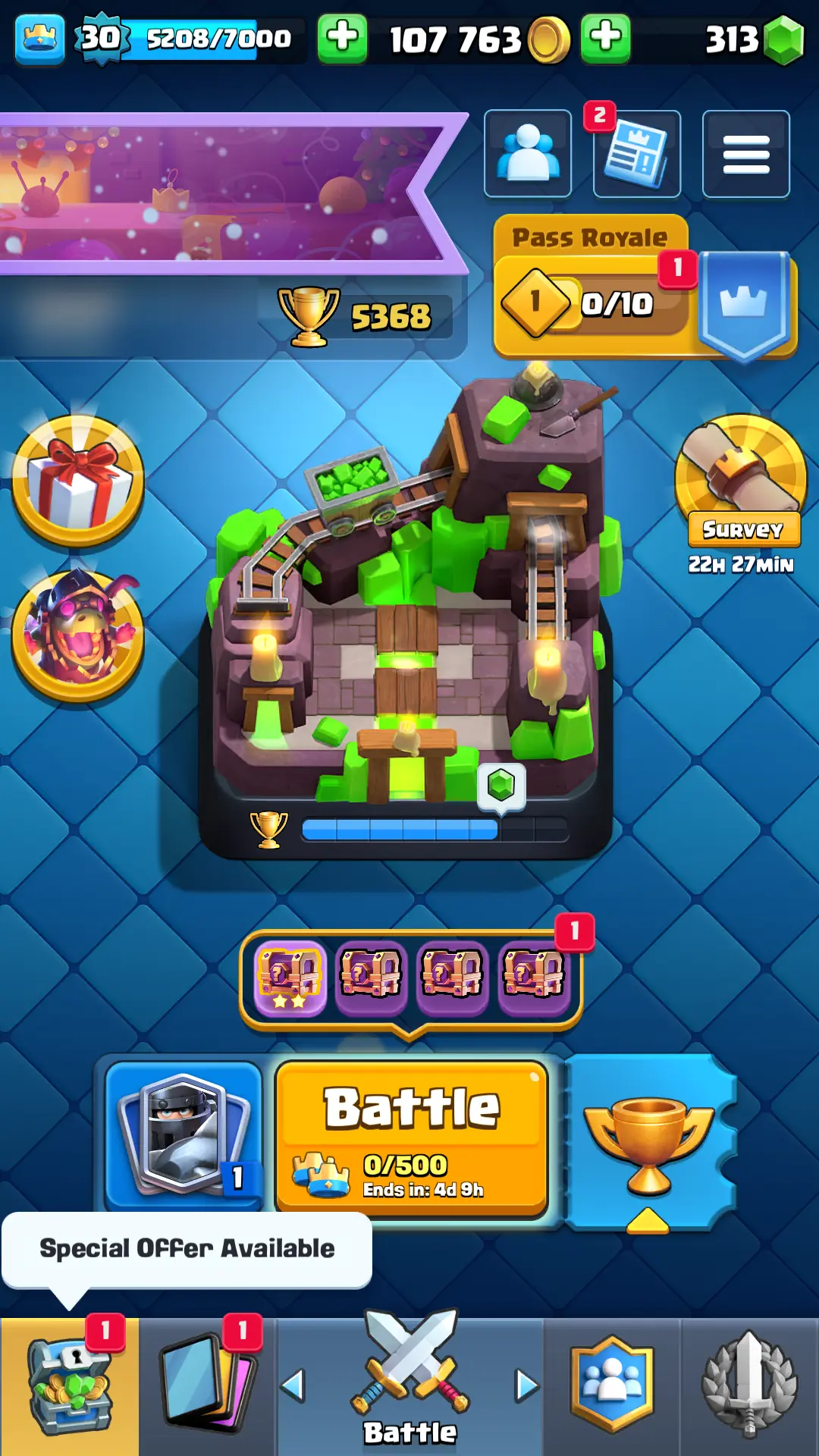 5368 TROPHIES ✨ 11 KING TOWER 👑 30 LVL 👑 109 CARDS 👑 14 EMOTE ✨ 0 MAX CARDS ✨ 0 EVO CARDS 👑 ANDROID & IOS 👑 INSTANT DELIVERY